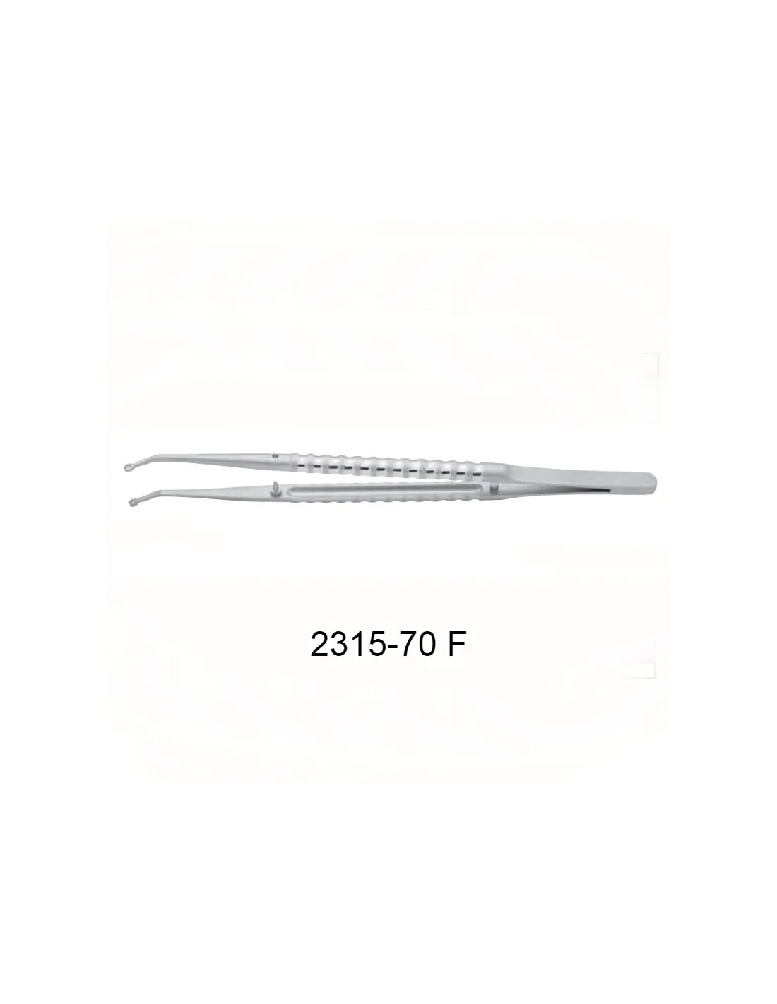 - 2302-60 F - Pinza atraumática, micro "Cooley" 17,1 cm - 0,8 mm - recta. Mango RS. Los micro-fórceps atraumáticos son una combinación entre los fórceps quirúrgicos, fuerte agarre fuerte pero que dañan el tejido, y los fórceps anatómicos de agarre suave pero de menor efectividad. Los micro dientes finos ofrecen un agarre más suave evitando la perforación y el deslizamiento del tejido incluso con una presión muy leve.