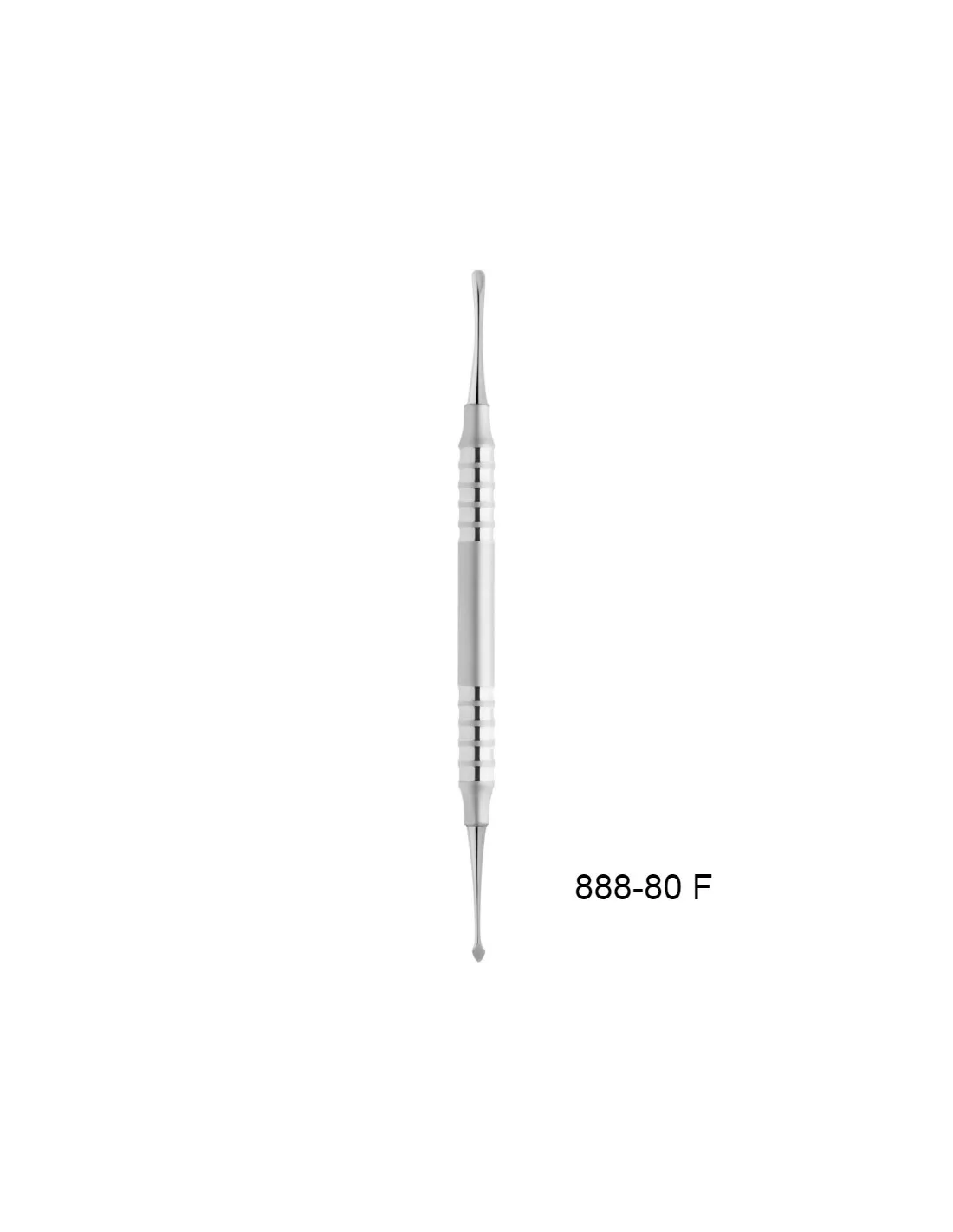- 888-80 F - Micro elevador perióstico “Iglhaut” 17,1 cm. Mango SL. Doble parte activa, su parte activa con forma de lanza permite el desprendimiento de la papila así como de la cresta marginal de la encía. La aleta mucoperiostal se puede desprender suavemente con su parte activa con forma de pala.