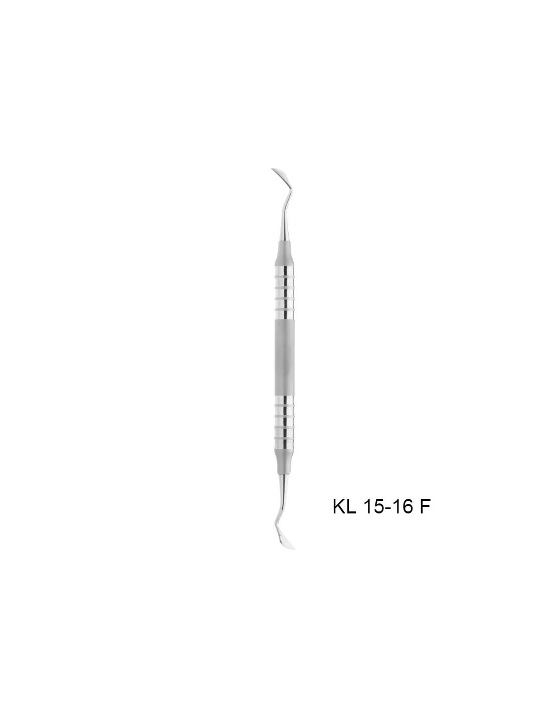 - KL15-16 F - Bisturí de gingivectomía # 15K-16K “Kirkland” 17,1 cm. Mango SL. Para las incisiones iniciales en gingivectomías y tratamientos gingivoplásticos y especialmente indicado en región retromolar.