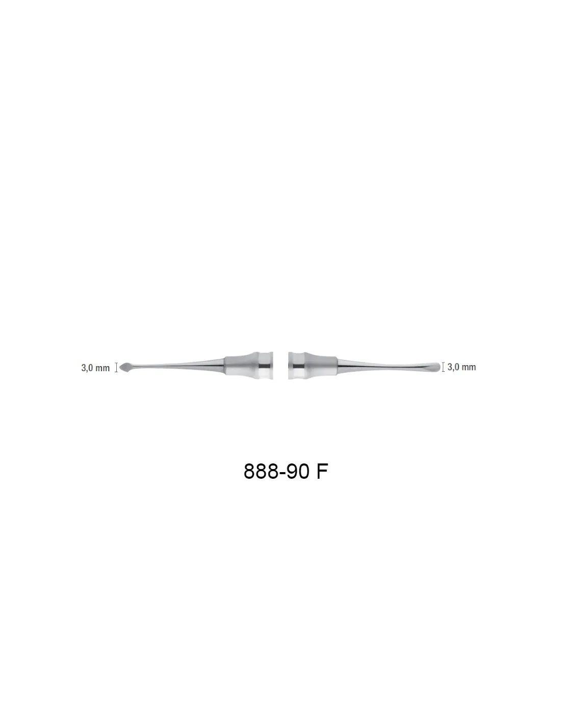 - 888-90 F - Elevador Periosteal Palti - 17,1 cm - 3,0 / 5,0 mm - Su parte activa con forma de lanza permite el desprendimiento de la papila así como el desprendimiento de la cresta de la encía marginal. La solapa mucoperiostal se puede desprender con suavidad gracias a su extremo opuesto con forma de pala.