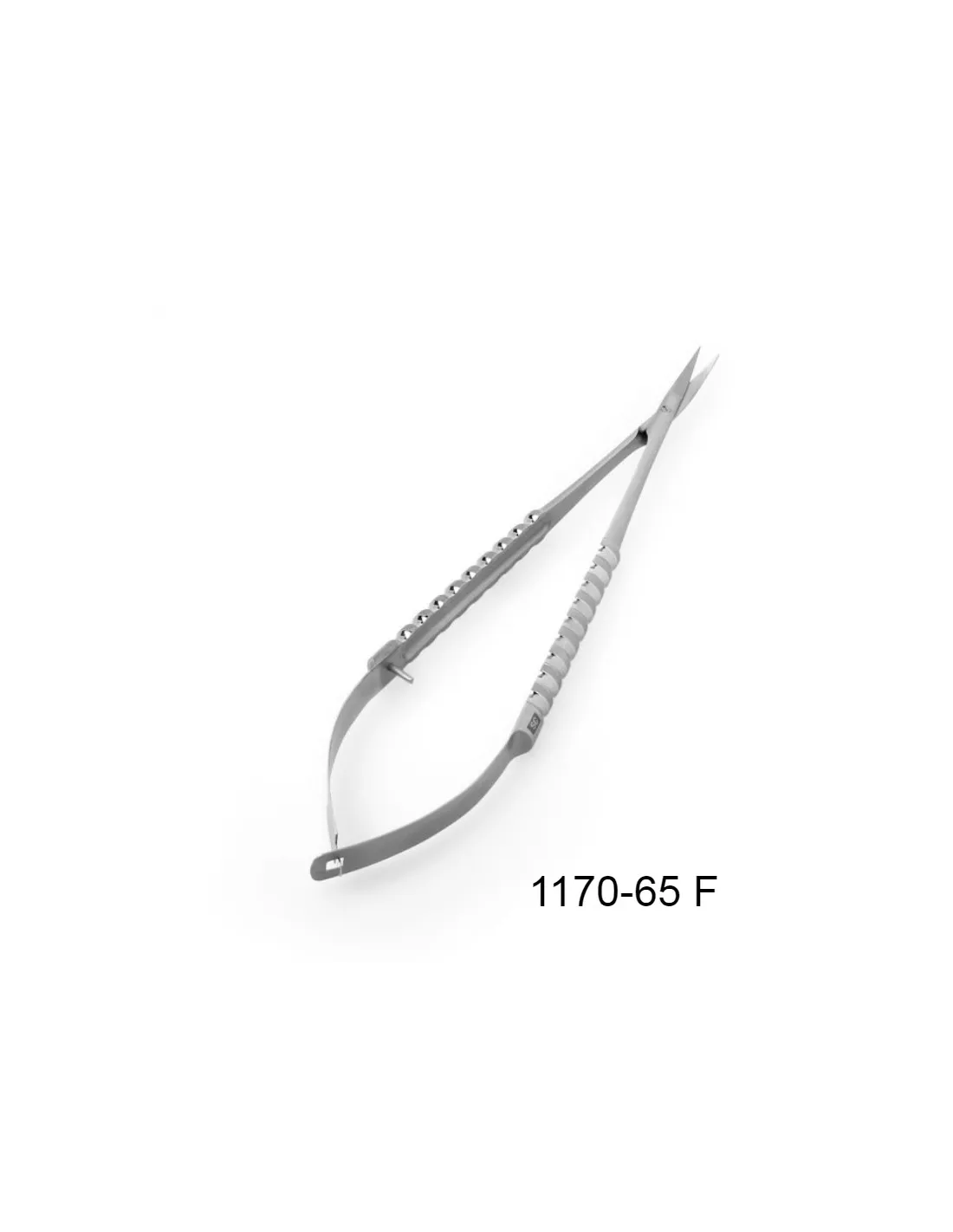 1170-65 F - Tijera quirúrgica micro Gomel - 16 cm - curvo, dentado fino. -Mango RS. Parte activa puntiaguda acabado Super-Cut. Desarrollada especialmente para cirugía mínimamente invasiva. Posibilidad de movimiento de giro, ideales para trabajar con lupas o un microscopio.