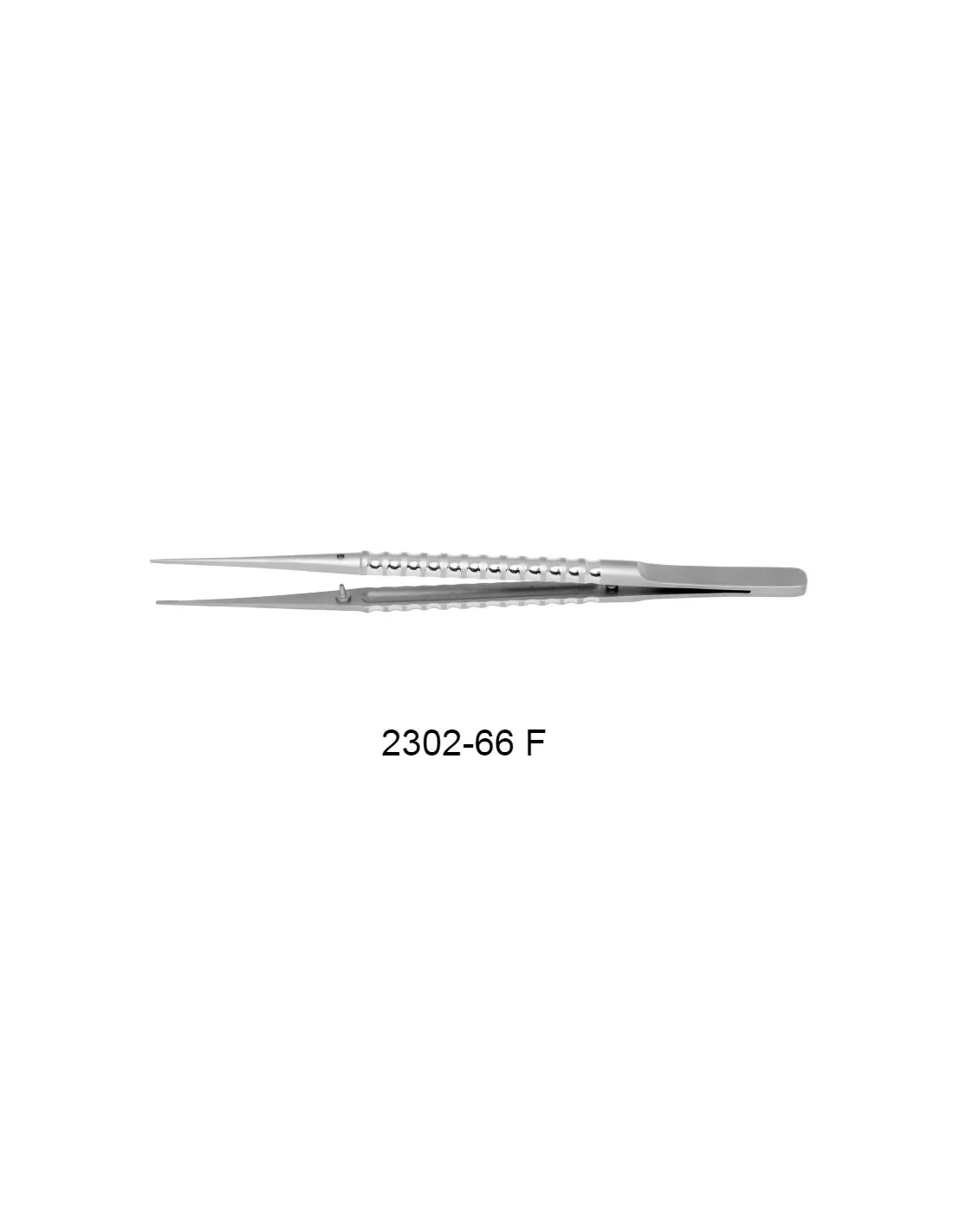 2302-66 F - Pinza atraumática, micro Cooley - 17,1 cm, 0,6 mm - recta y dentada - Mango RS. Los micro-fórceps atraumáticos son una combinación entre los fórceps quirúrgicos, fuerte agarre fuerte pero que dañan el tejido, y los fórceps anatómicos de agarre suave pero de menor efectividad. Los micro dientes finos ofrecen un agarre más suave evitando la perforación y el deslizamiento del tejido incluso con una presión muy leve.