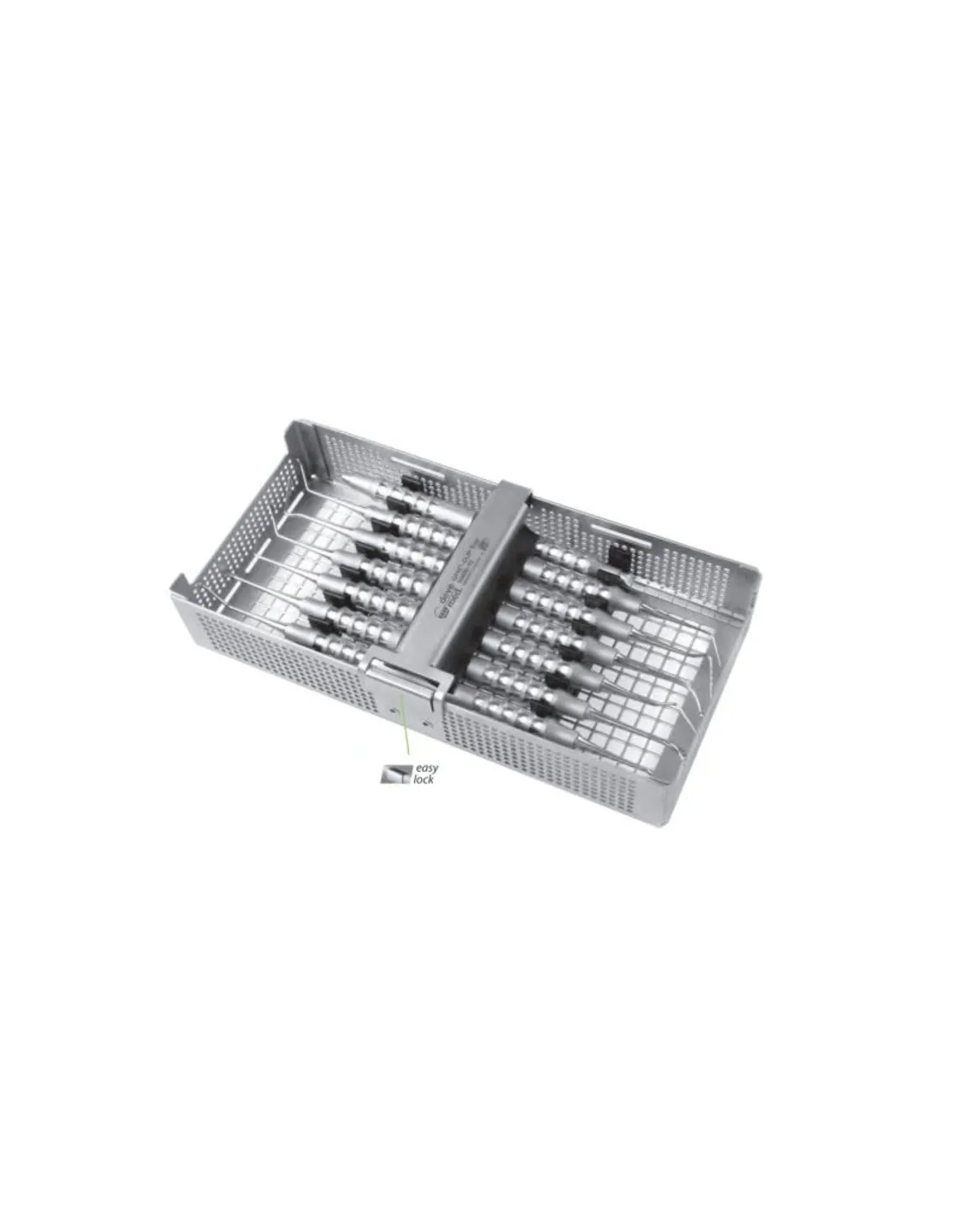 Este set contiene instrumentos con mango SL, ultraligeros que permite un trabajo táctil sin dañar las estructuras adyacentes.