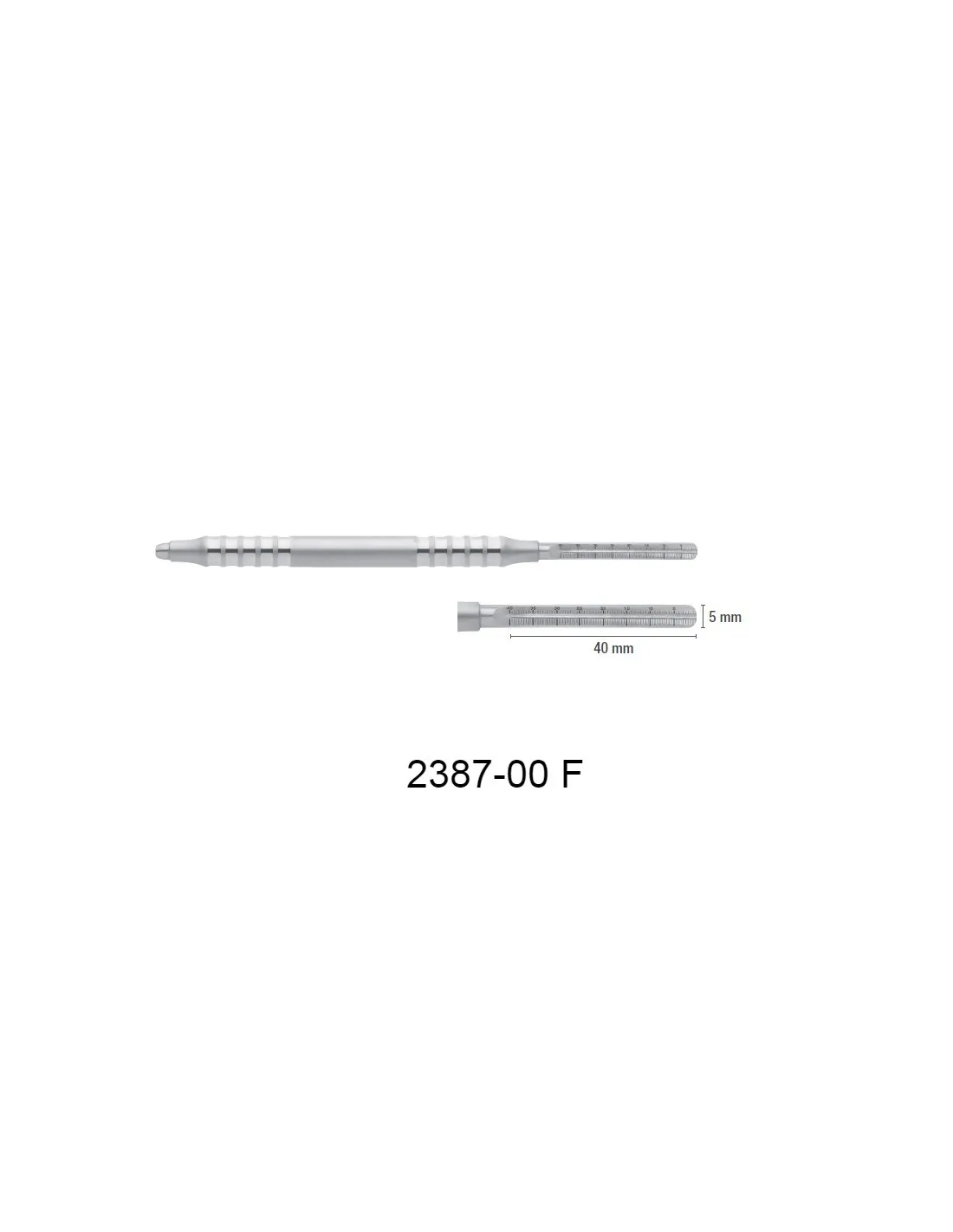 - 2387-00F - Mango de espejo bucal, especialmente indicado para endodoncia - 15,4 cm - graduado, no calibrado - La escala de medición ayuda a definir con precisión la longitud de trabajo de las puntas endodónticas.