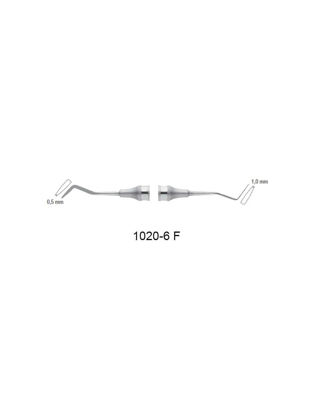 - 1020-6 F - Posicionador gingival - 17,1 cm - 0,5 / 1,0 mm - Mango SL. - Instrumentos para el posicionamiento atraumático del cordón gingival.