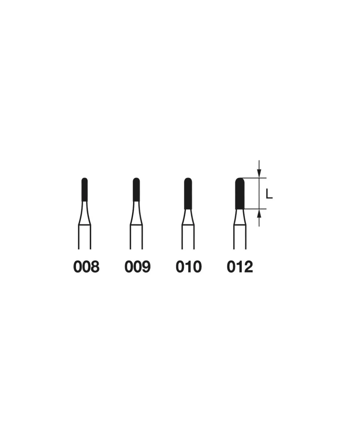 Fresa dental Komet 838 es una fresa FG turbina con forma cilíndrica, corta con punta redonda.