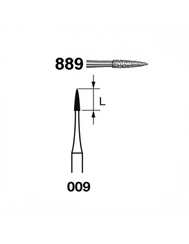 Fresa dental 889 de Komet es una fresa diamantada, aguja, indicada para la preparación de coronas.