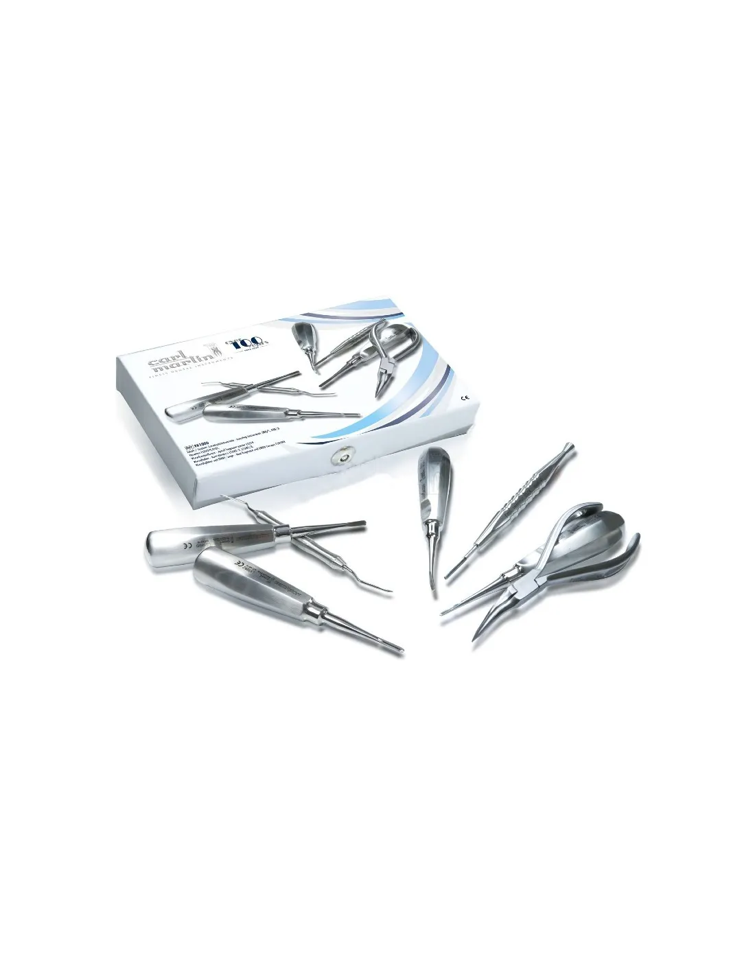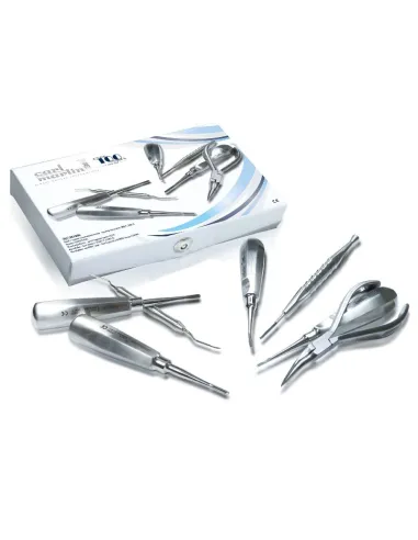 El Set de elevadores de raíces está compuesto por los siguientes instrumentos dentales:
