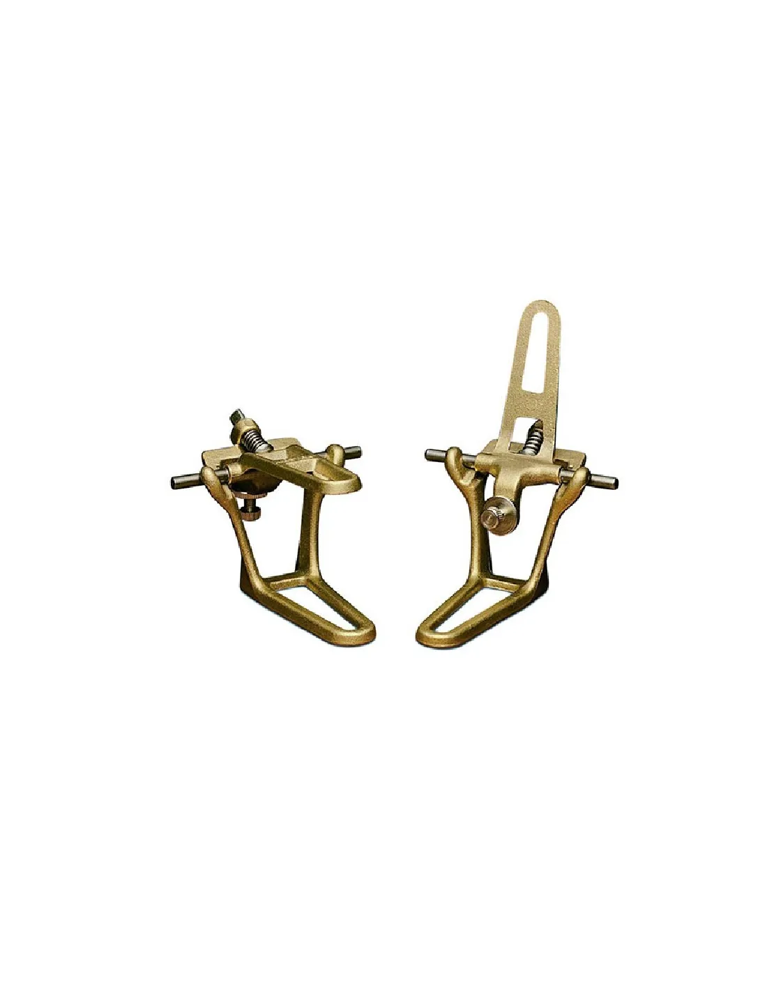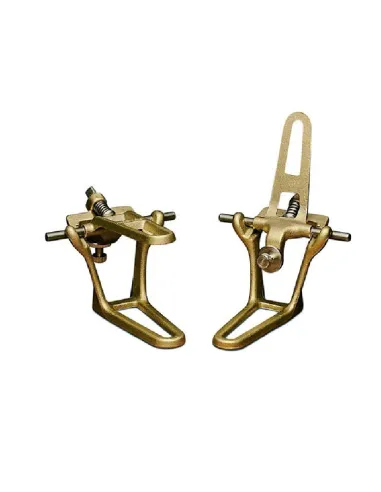 El articulador funcional de dos puntos para puentes de Mestra está fabricado en España con una aleación ligera de latón y acero inoxidable, con un compromiso óptimo entre peso y resistencia.