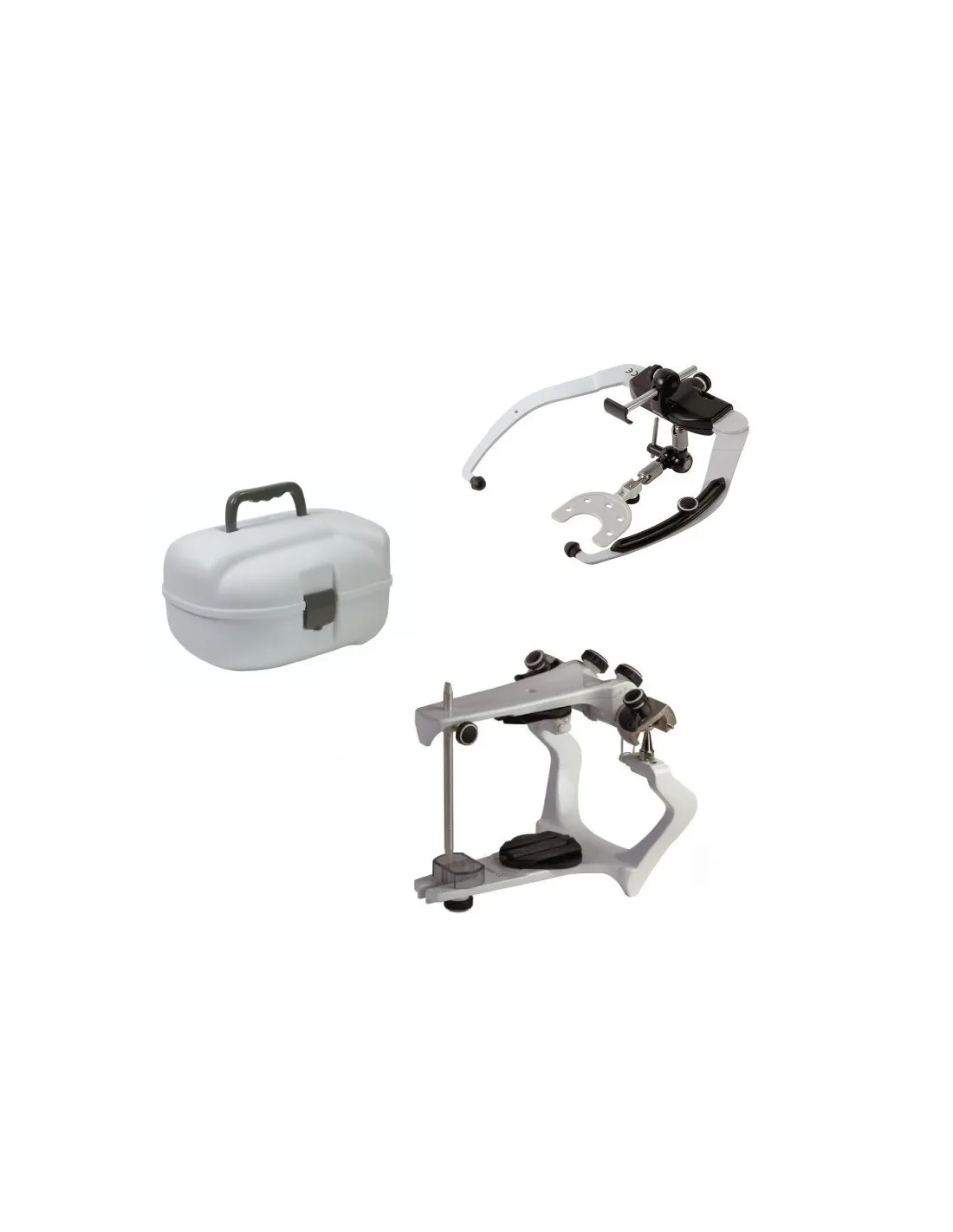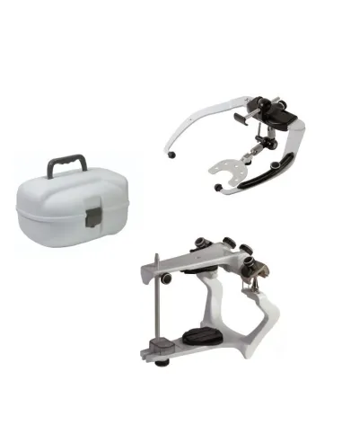 El kit 010107E de Mestra by Bio-Art consta de: articulador tipo arcón, arco facial élite y estuche.