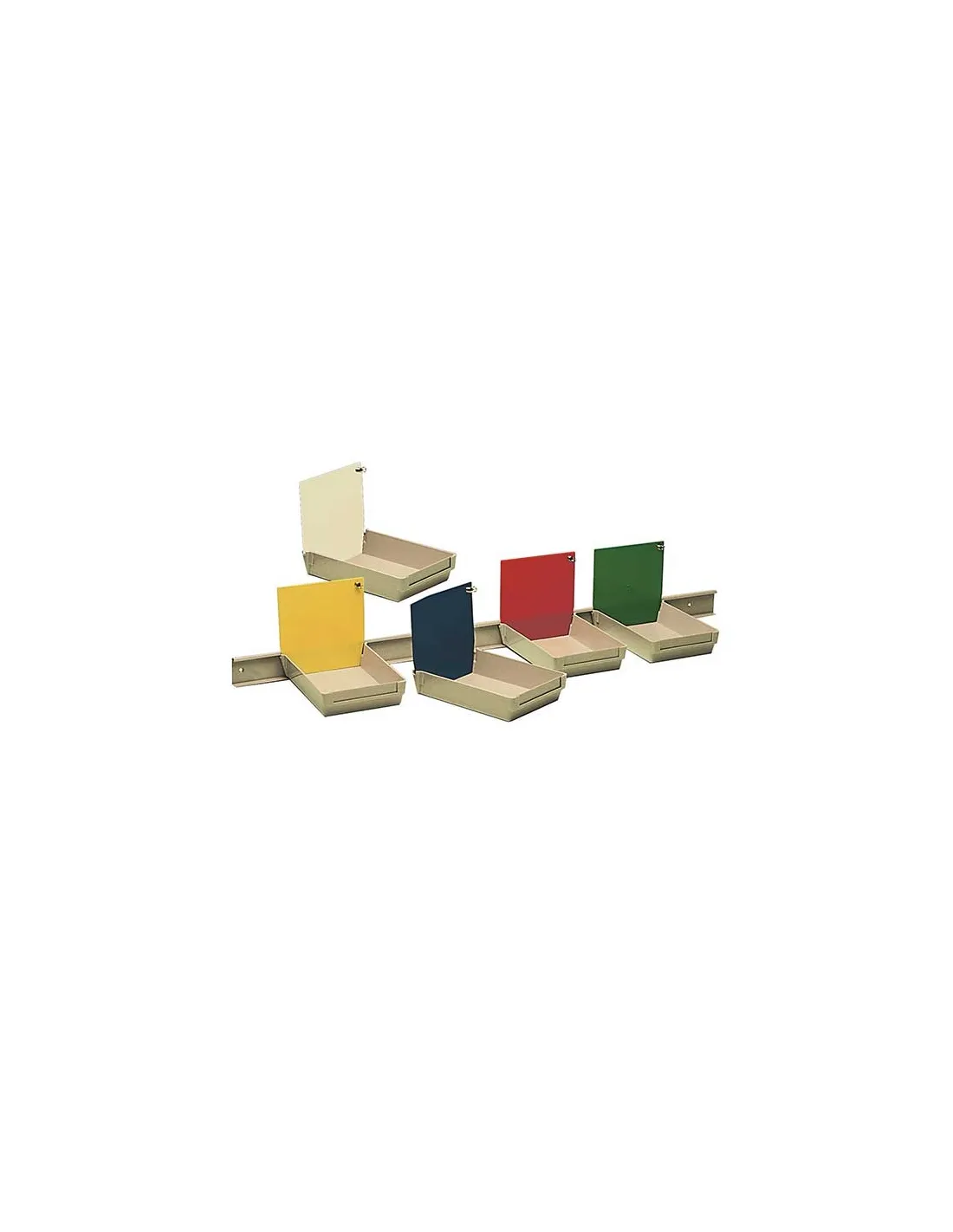 Cuenta con cajera central para etiquetas y muelle de sujeción para hojas específicas.