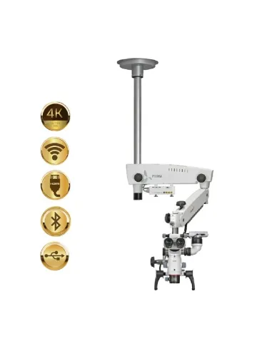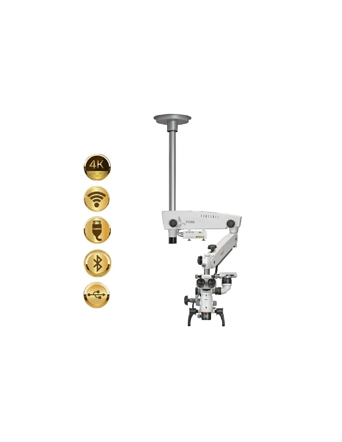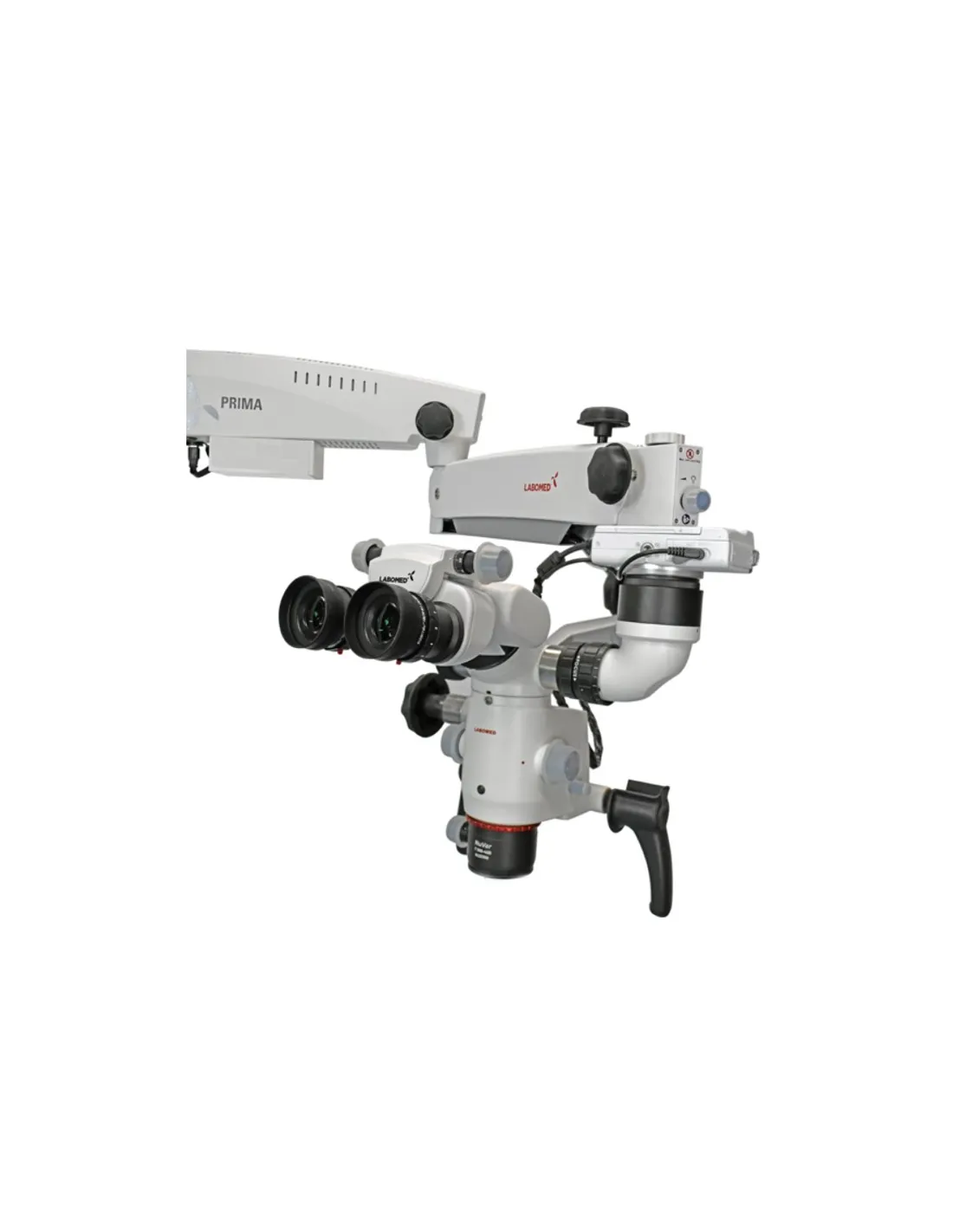 El microscopio dental Prima DNT Premium Nuvar 10 Labomed se presenta con sistema de montaje a techo.