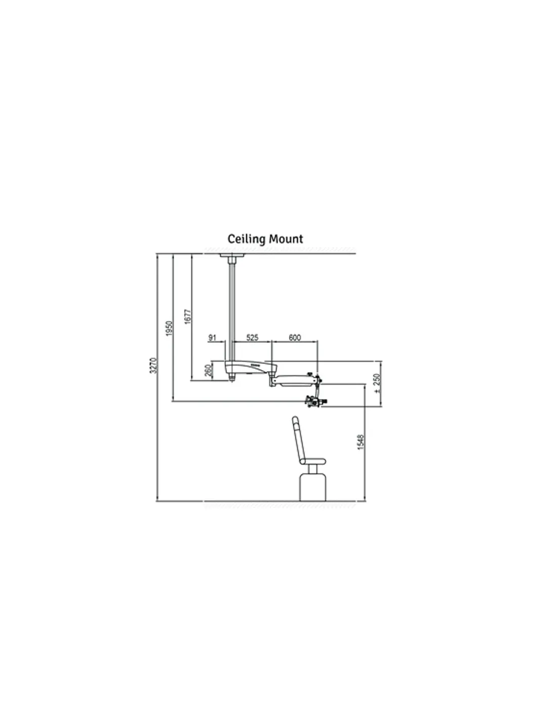 Brazo de suspensión: 1125 mm con movimiento vertical: 600 mm.