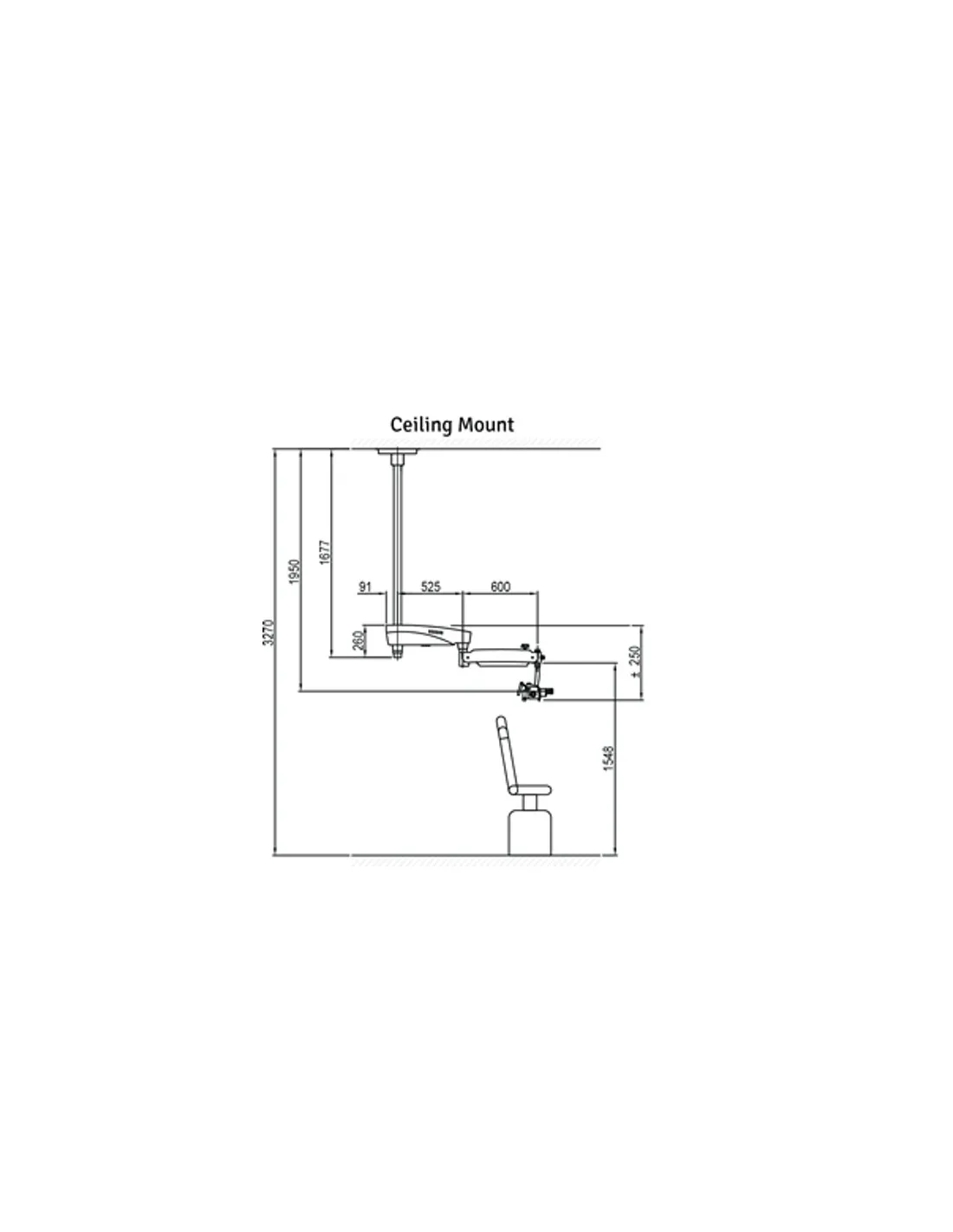 Brazo de suspensión: 1125 mm con movimiento vertical: 600 mm.
