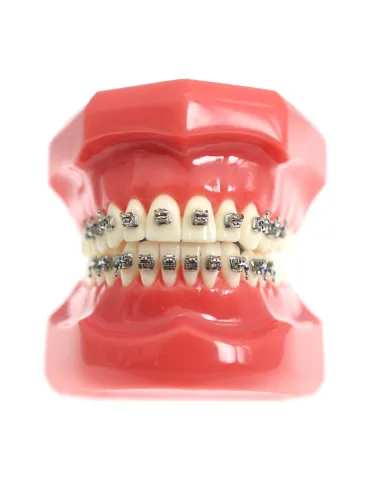 El modelo de Bracket de SlimDent es un tipodonto de estudio con brackets metálicos interactivos.