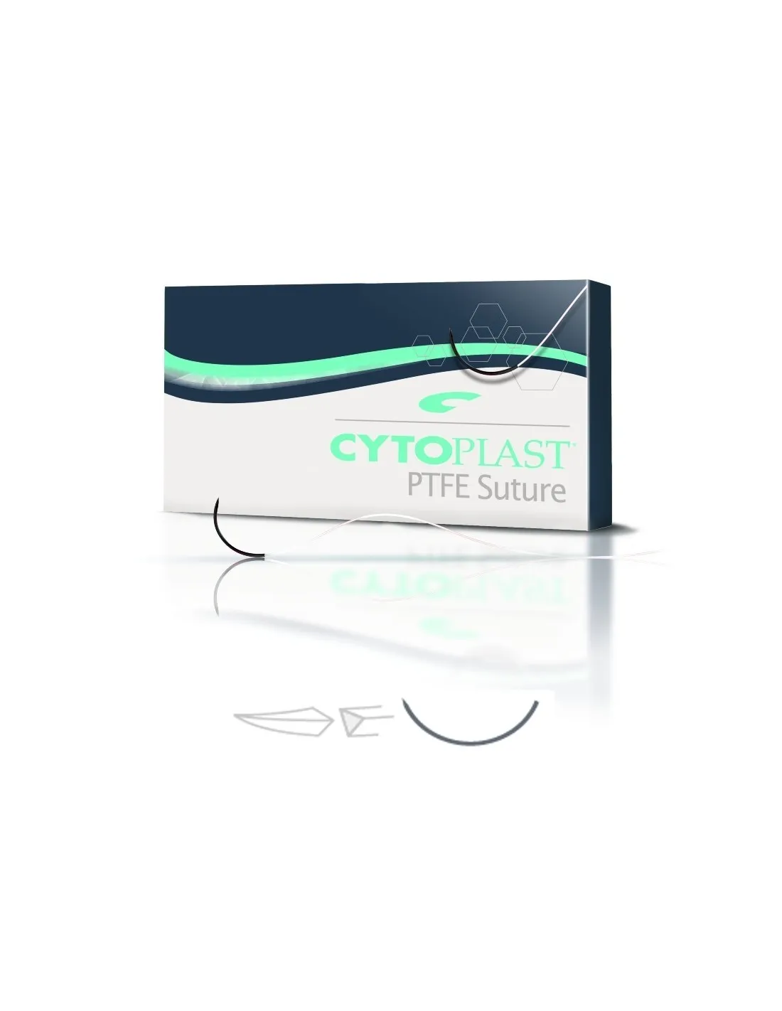 Cytoplast de Octeogenics es una sutura quirúrgica de PTFE (politetrafluoroetileno) de grado médico 100%, biológicamente inerte, con agujas de acero inoxidable Serie 300.