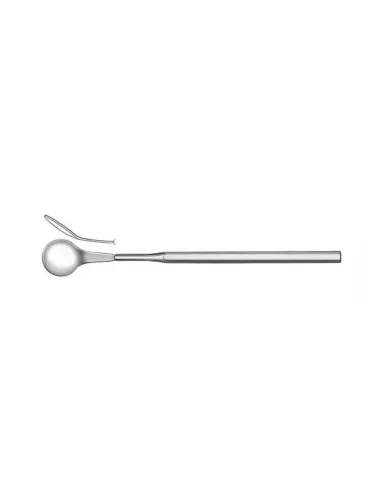 El retractor de mejillas Hilger presenta forma de cuchara con mango alargado.