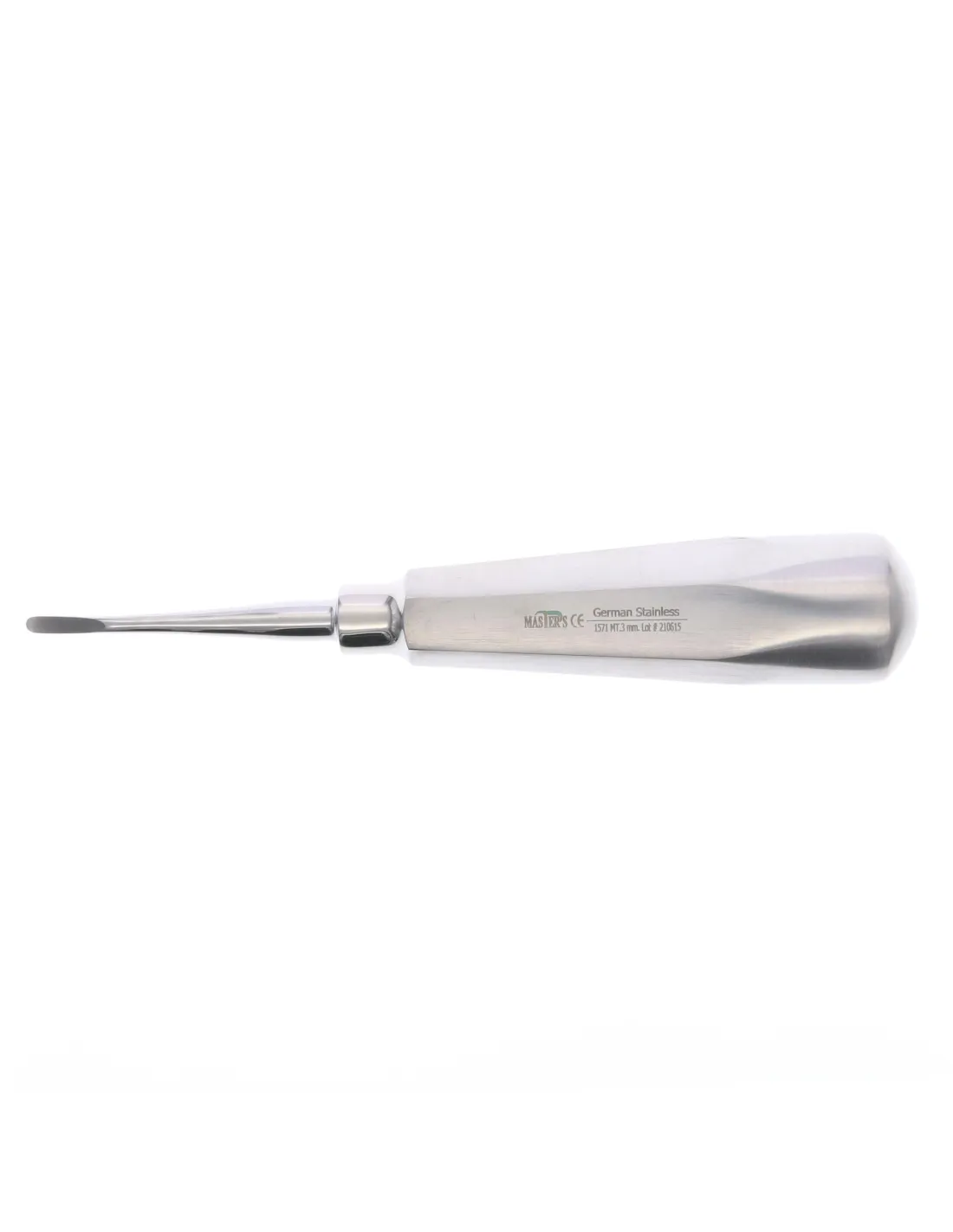 El luxador metálico de Masters es un instrumento manual para separar la encía del diente antes de llevar a cabo la extracción.