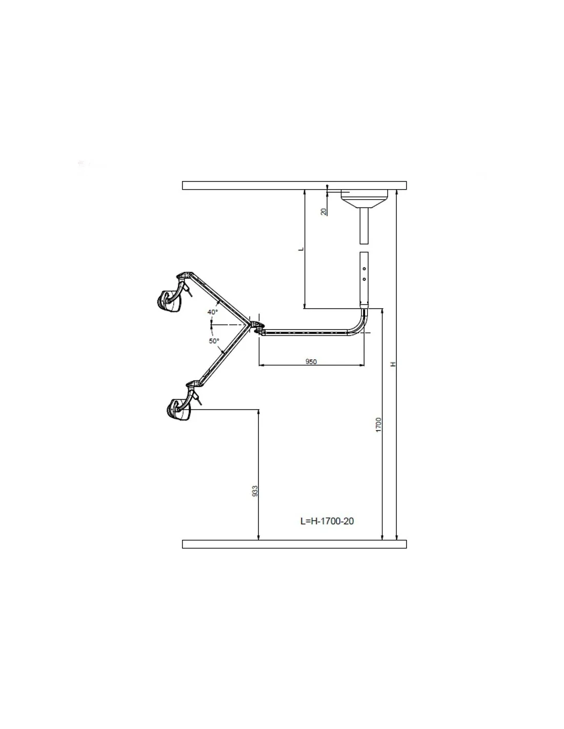 LÁMPARA ODONTOLÓGICA LED MAIA, BRAZO 90 CM, CON INSTALACIÓN A TECHO, TRANSFORMADOR Y SENSOR