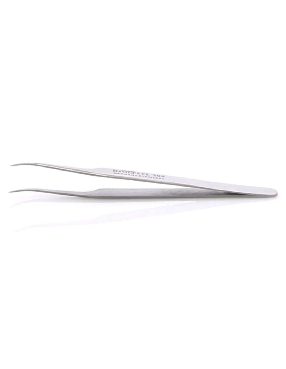 Esta pinza de ortodoncia presenta una parte activa larga, con final curvado y ligeramente puntiaguada.