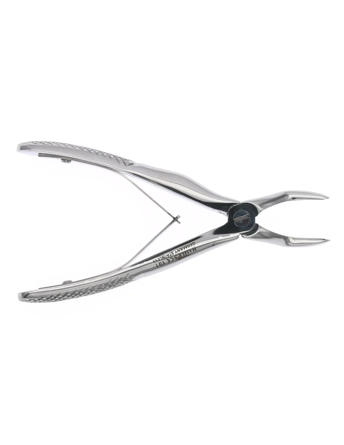 Los fórceps de extracción para niños de Master Surgical figura 51S con forma inglesa, están fabricados en acero alemán de alta calidad.