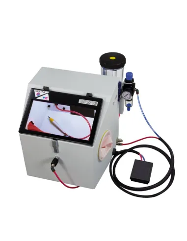 La chorreadora Terra II Mestra está especialmente diseñada para el microchorreado de pequeñas piezas de prótesis dentales.