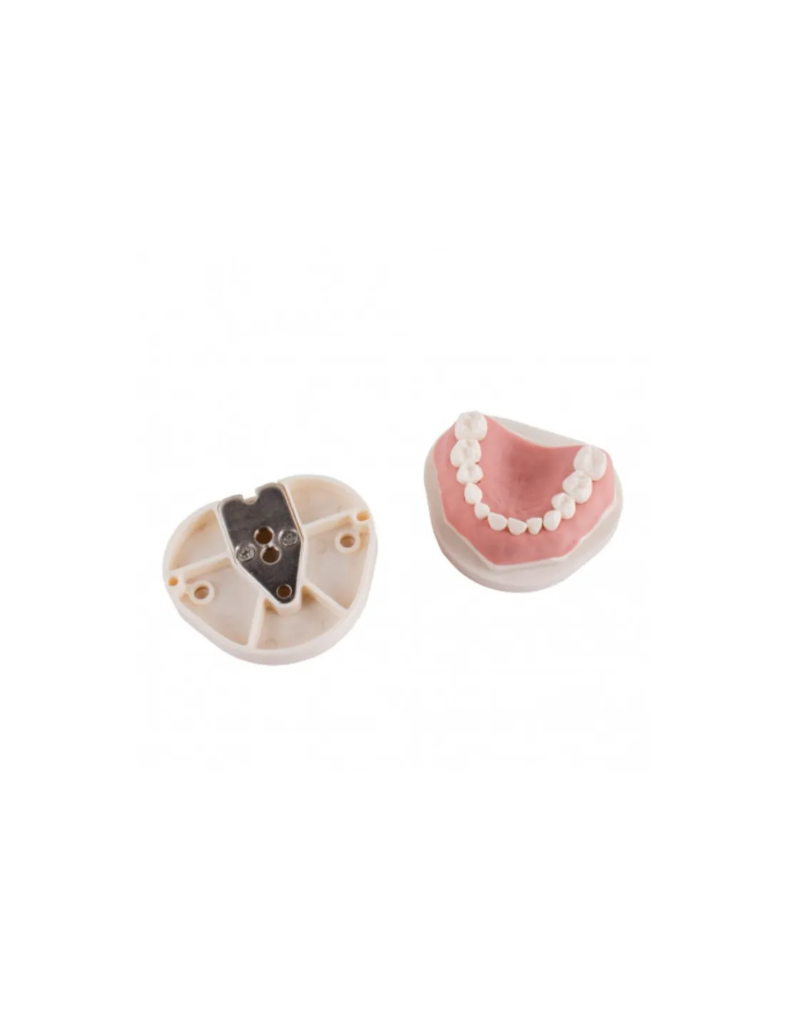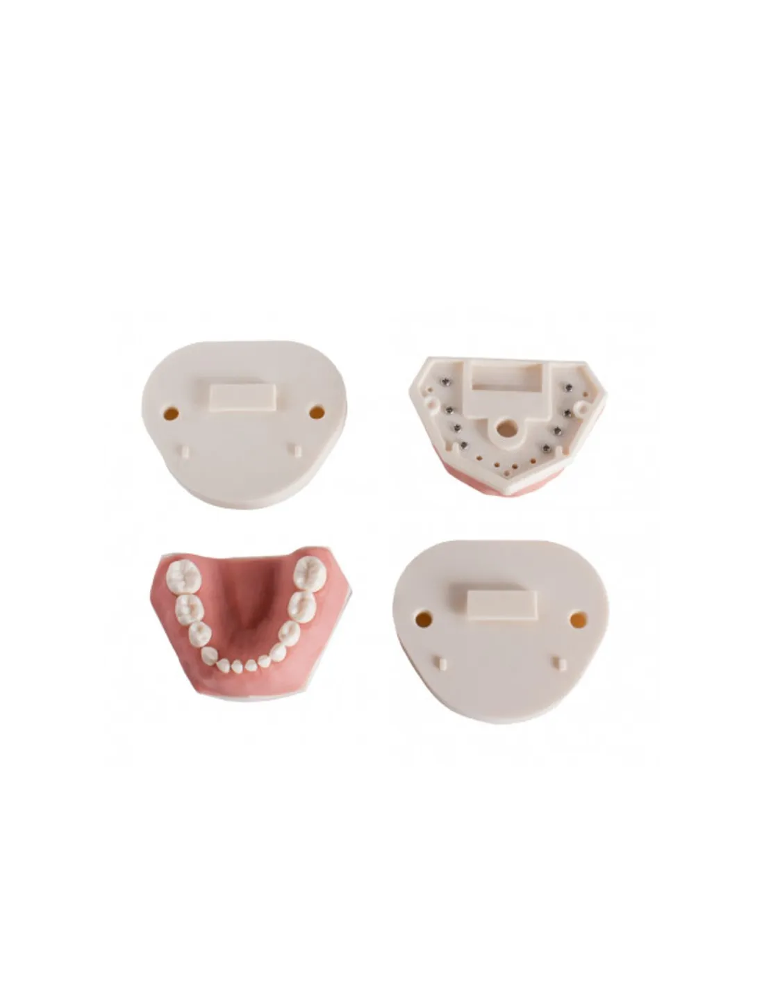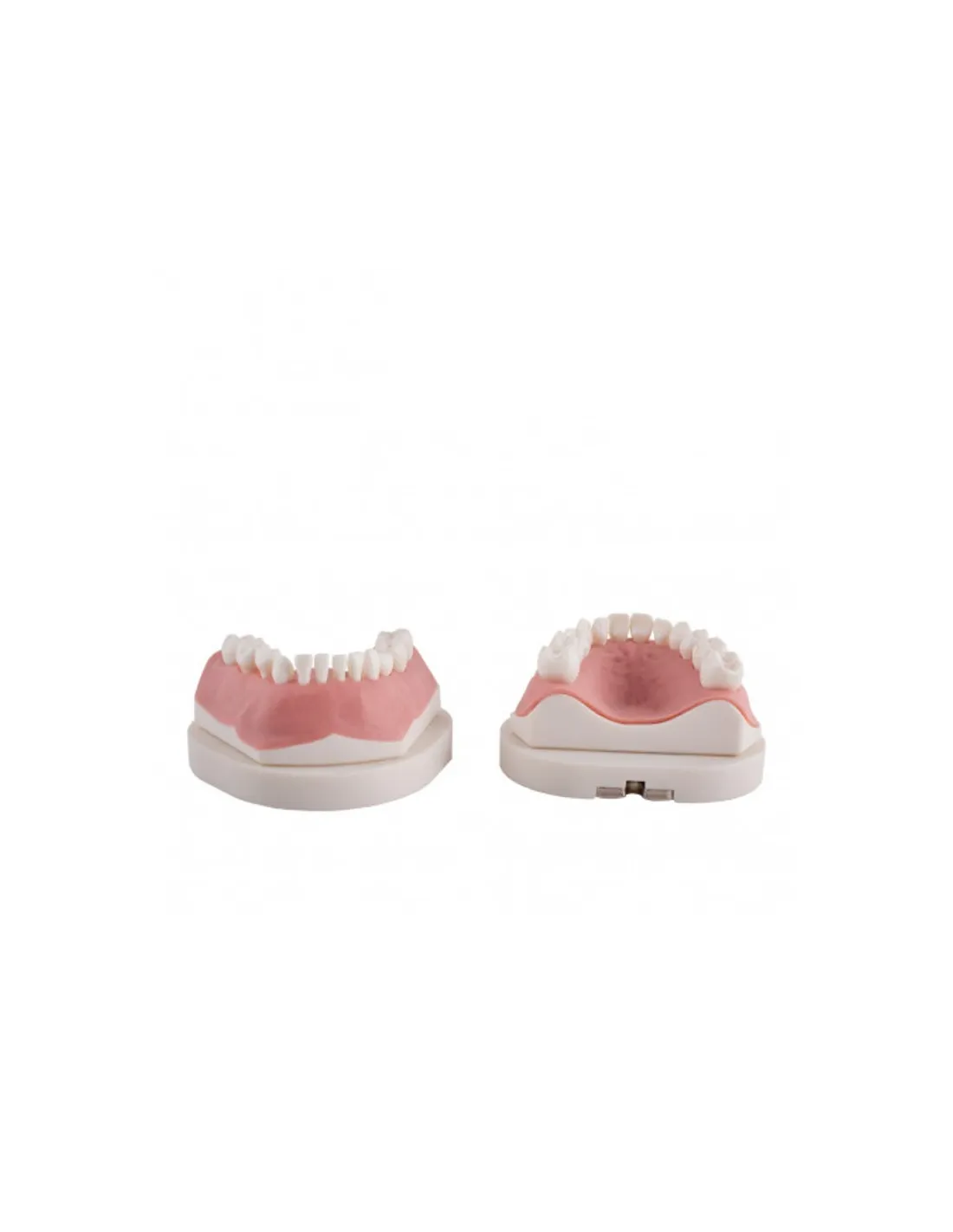 Con placa base, este modelo de estudio pediátrico está compuesto por 24 dientes: 4 permanentes y 20 temporales.