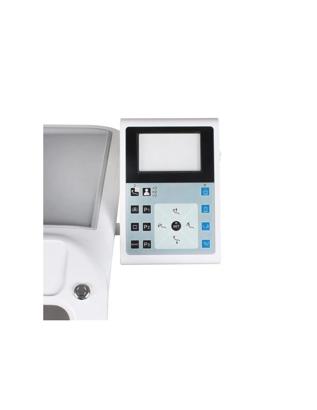 Gracias a su control de posición mediante teclado permite subir y bajar el sillón en altura y variar la inclinación del respaldo. Además, de memorizar diferentes posiciones y controlar el encendido y apagado de la lámpara quirúrgica. Con negatoscopio.