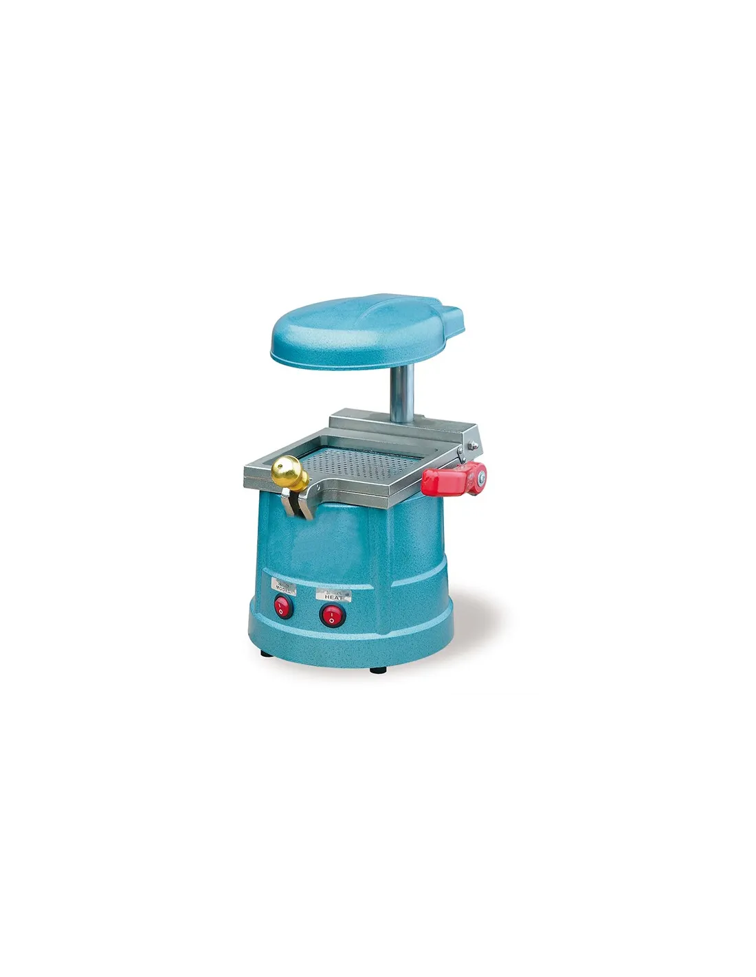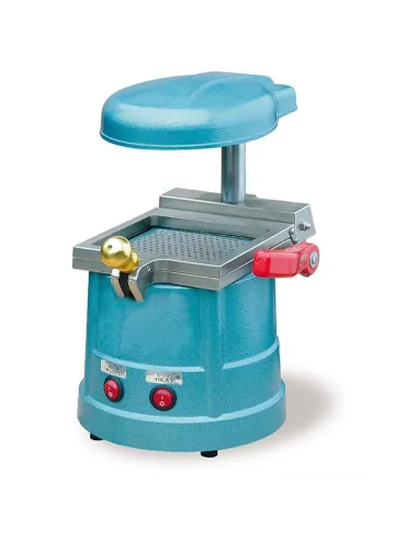 Máquina moldeadora de planchas termoplásticas al vacío, que puede llevar a cabo varias funciones como férulas de blanqueamiento, férulas para bruxistas (flexibles o rígidas), protectores bucales, cubetas individuales, placas base, etc.