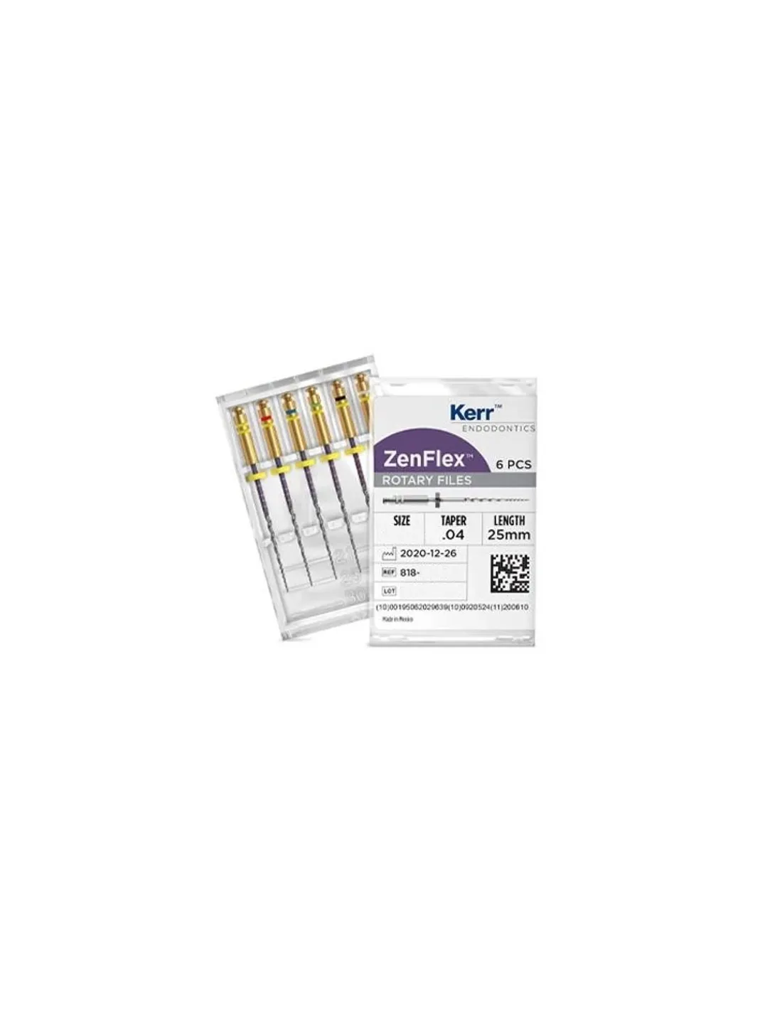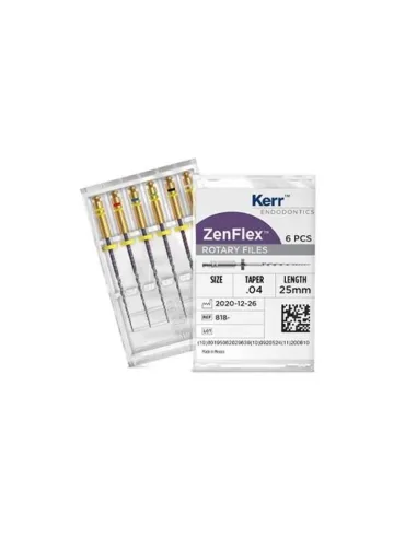 La caja de Limas ni-ti Zenflex Conicidad .04 25mm de Kerr contiene 6 unidades a elegir tamaño entre los disponibles o surtido.