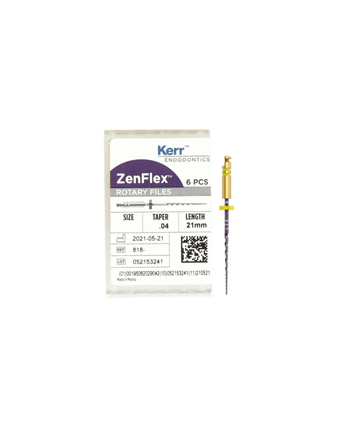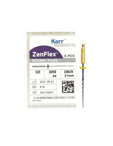 La caja de Limas ni-ti Zenflex Conicidad .04 21mm de Kerr contiene 6 unidades a elegir tamaño entre los disponibles o surtido.