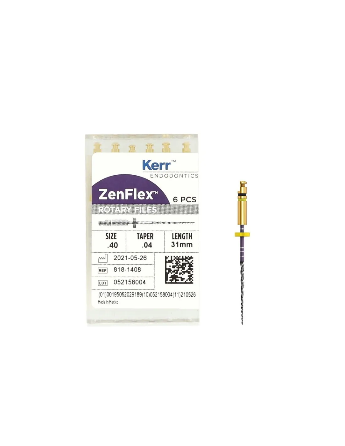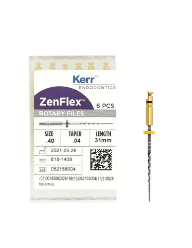 La caja de Limas ni-ti Zenflex 40 / .04 / 31mm de Kerr contiene 6 unidades.