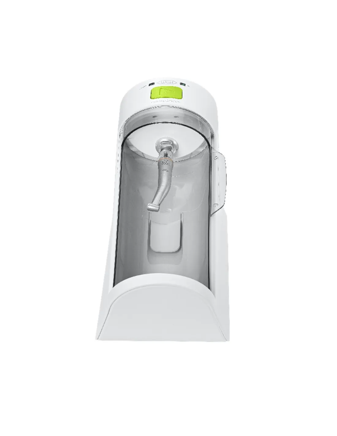 Su uso es rápido gracias a su botón de inicio One Touch y a su práctico sistema de cartuchos con aceite y líquido de limpieza. Colocar el instrumento, cerrar la cúpula, presionar el botón para su funcionamiento y listo.
