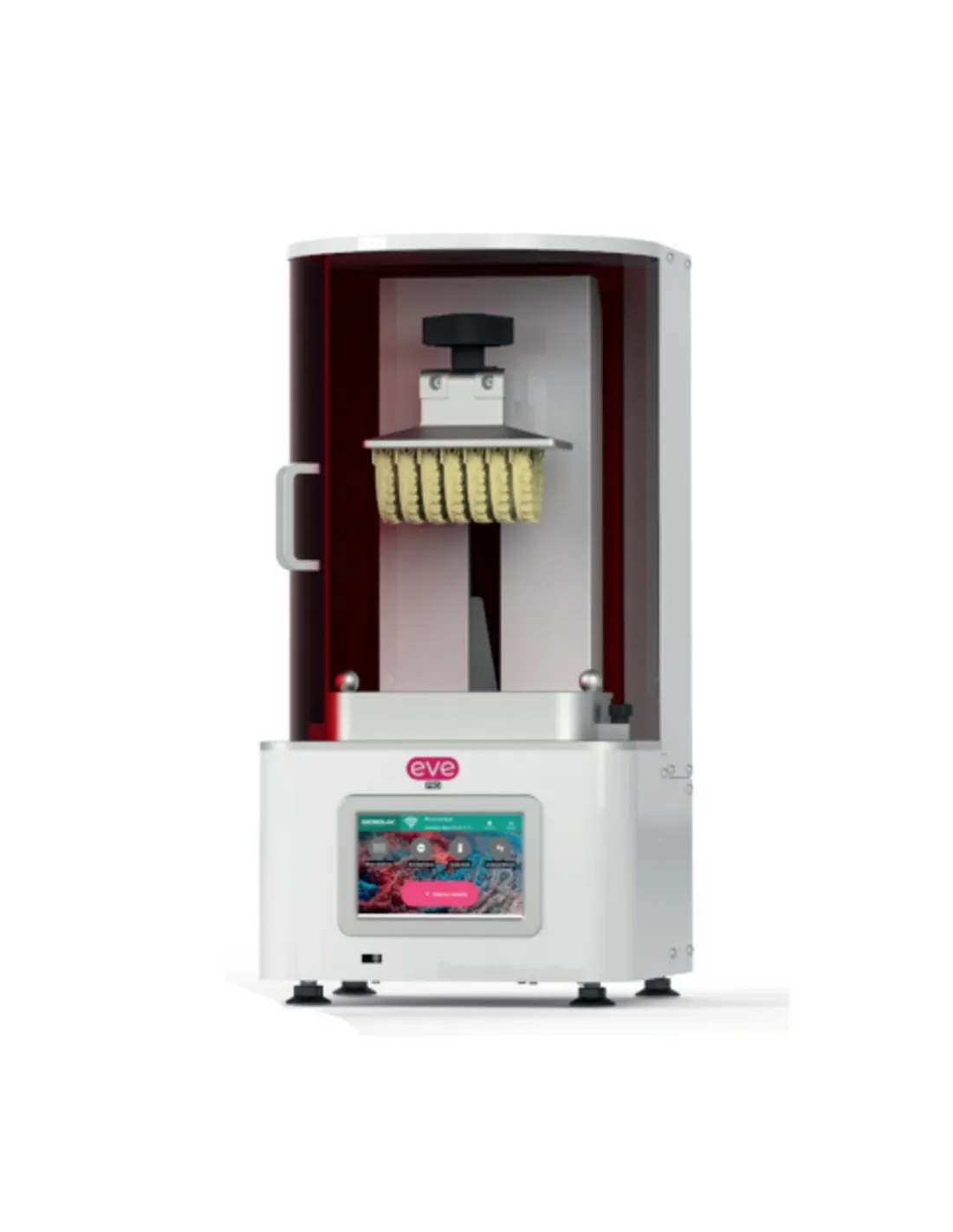 Eve Pro impresora 3D Microlay cuenta con una potente matriz de LEDs de 405 nm que distribuye uniformemente la energía por toda la superficie de impresión logrando resultados precisos, repetibles y fiables.
