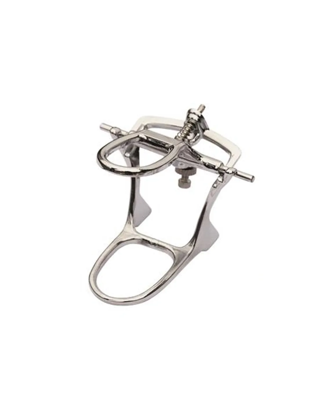 Este articulador de charnela dispone de maxilar superior regulable por tornillo, muelle que permite movimientos de lateralidad y autoretorno a posición primaria.