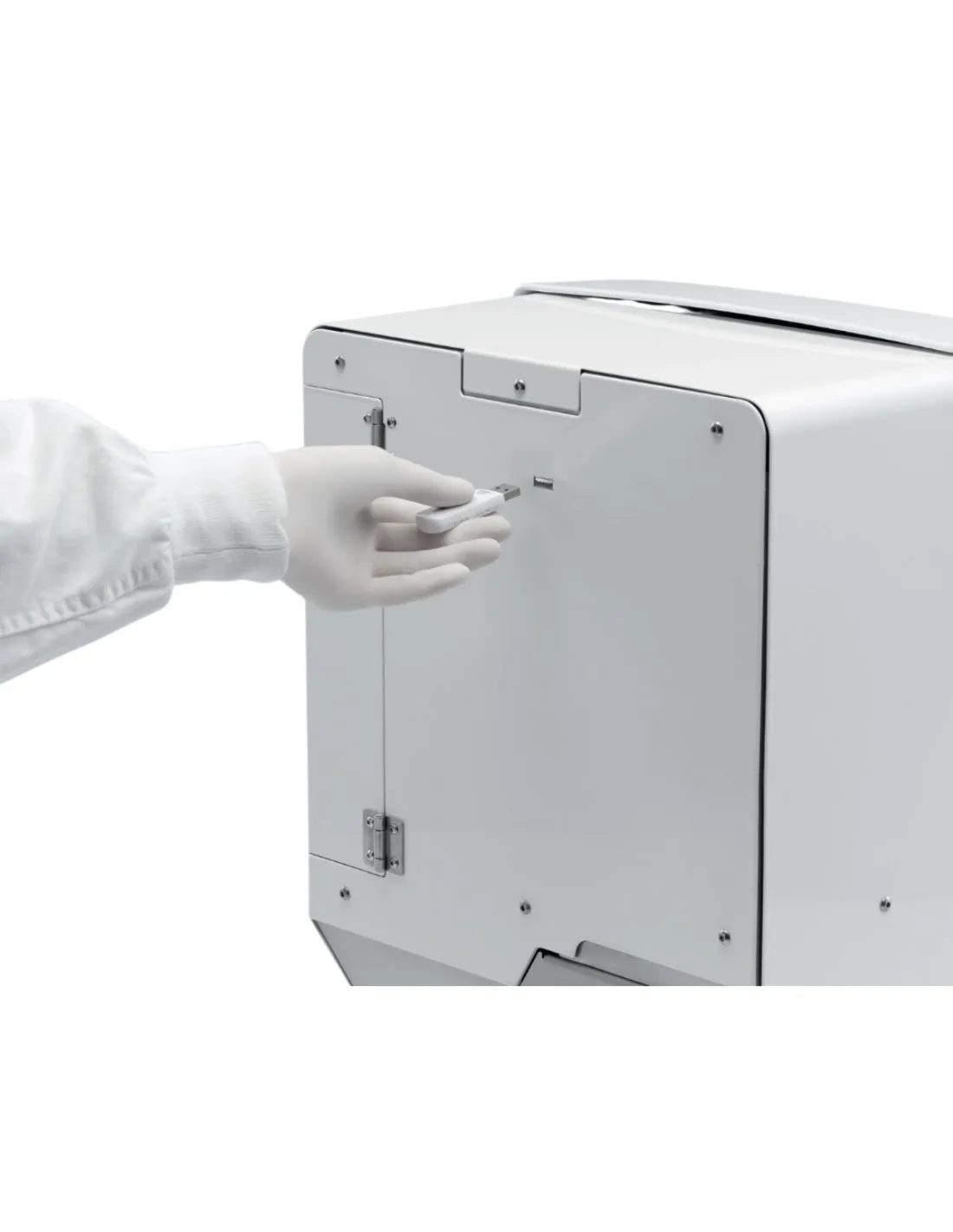 Gracias a la entrada USB situada en la parte trasera de la unidad, el usuario podrá descargar los informes del ciclo. Indispensable para la correcta trazabilidad del proceso de reacondicionamiento.