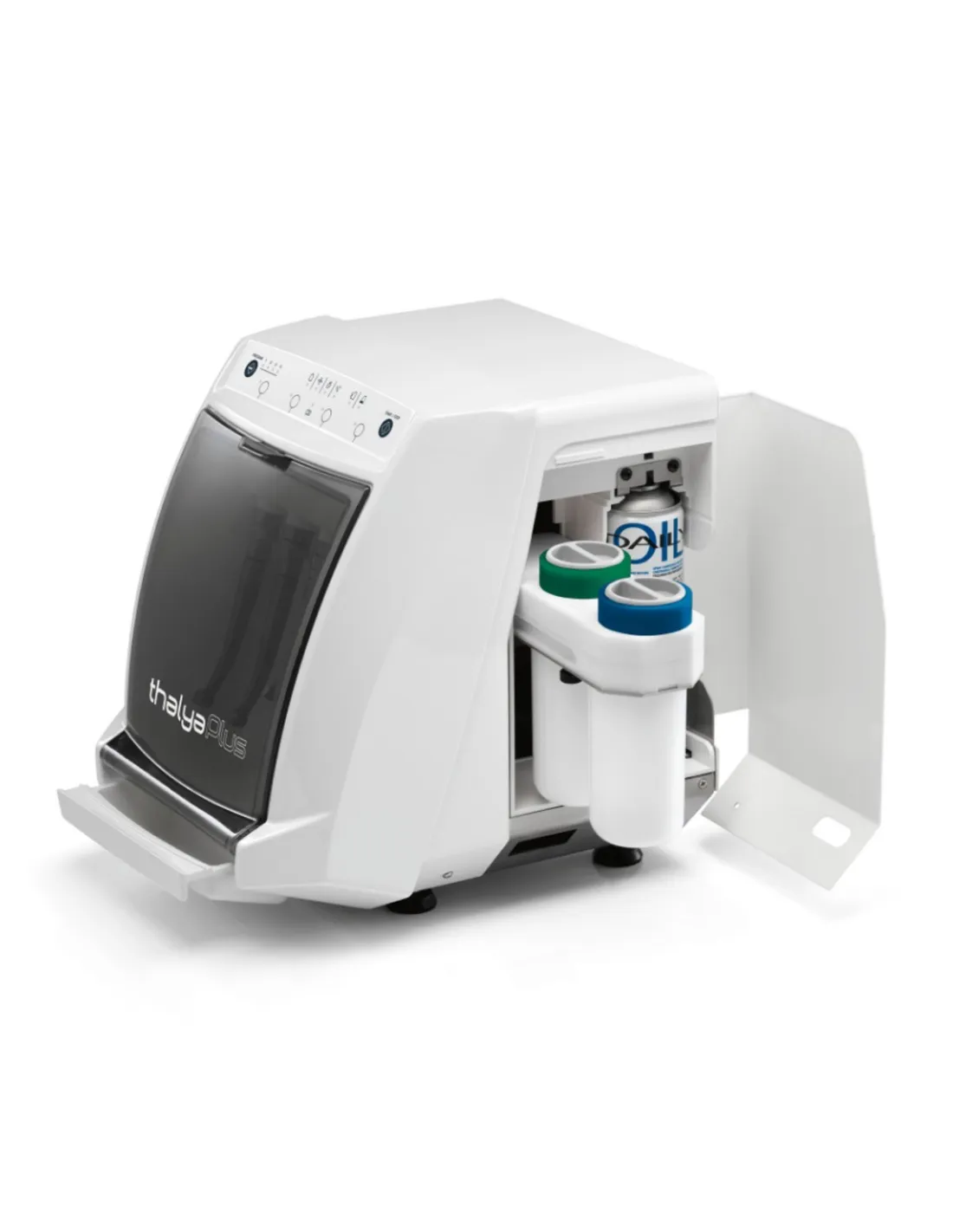 Thalya Plus presenta un diseño innovador con una cuba de tratamiento que permite su completa y perfecta higienización. Extrayendo la puerta frontal y el cajón de recogida de los líquidos se puede efectuar una limpieza completa de la máquina.