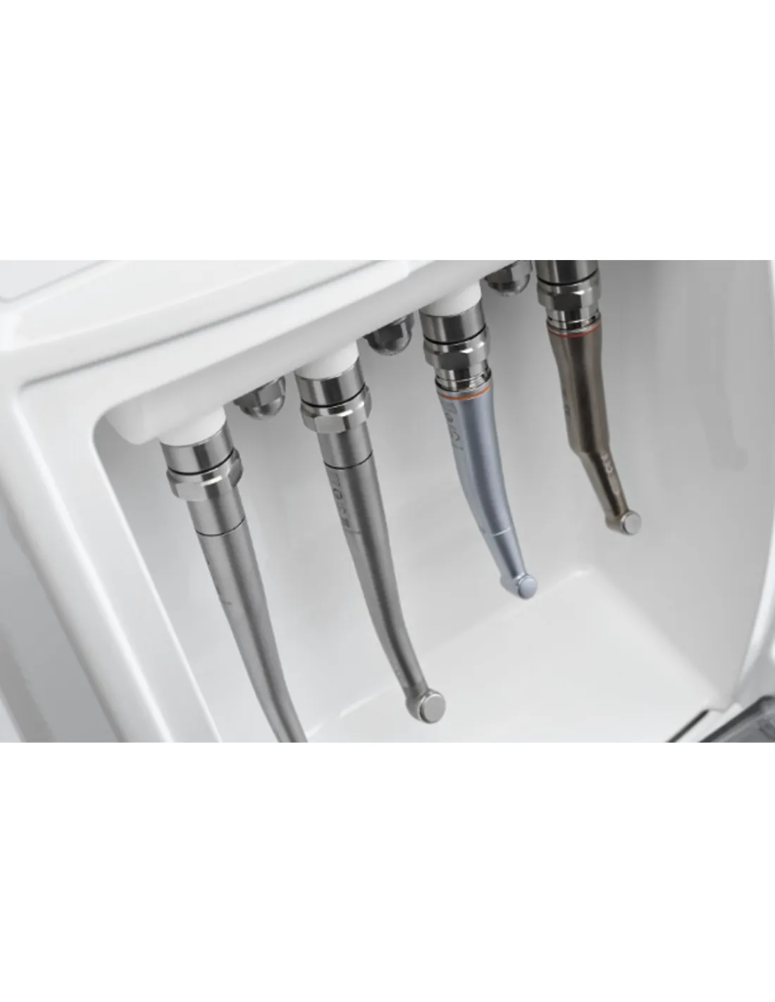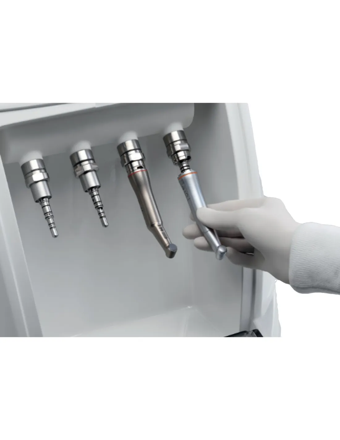 - Para la limpieza, desinfección, secado y lubricación de instrumental rotatorio (turbinas, piezas de mano y ultrasonidos).