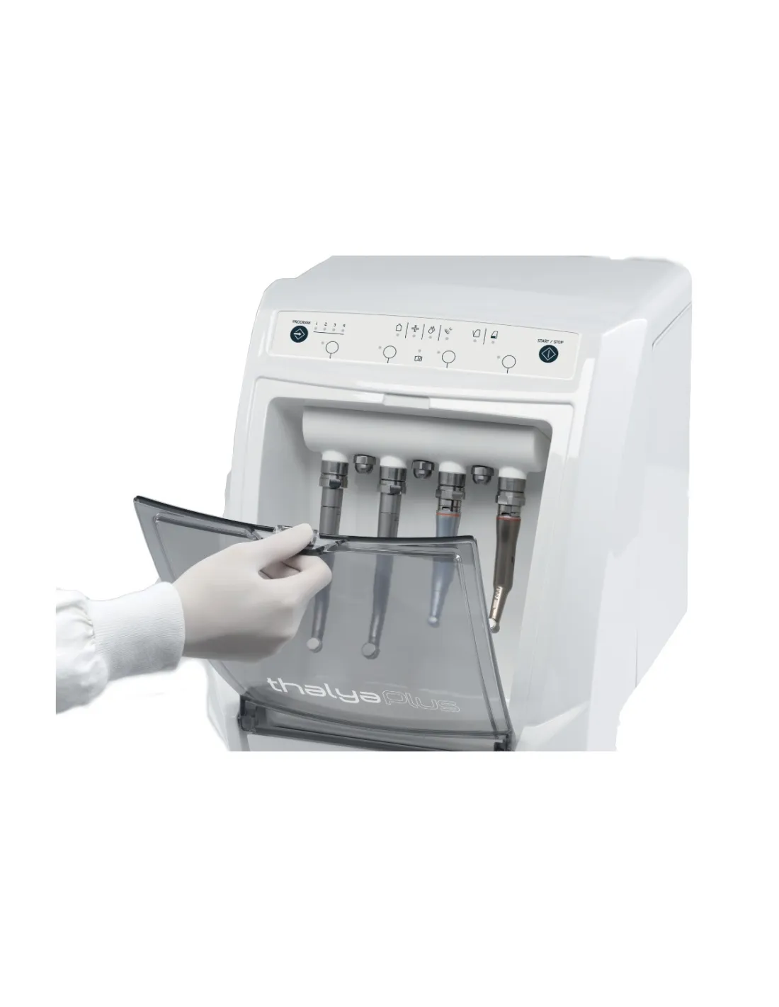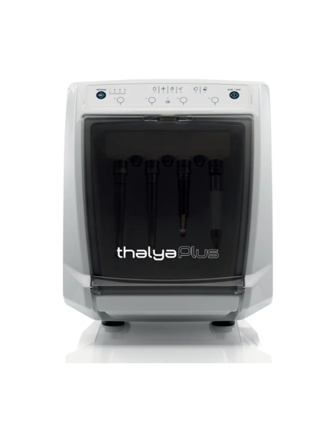 Thalya Plus es apta para turbinas, piezas de mano para micromotor y ultrasonidos. Es suficiente con disponer del adaptador correcto para efectuar el tratamiento.