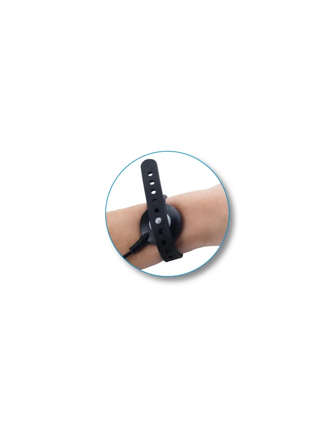 Dispone de un sistema de brazalete en el brazo del paciente, fácil de colocar y desinfectar, que mejora la conductividad y evita la concentración del calor.