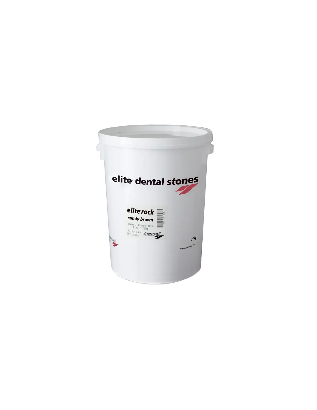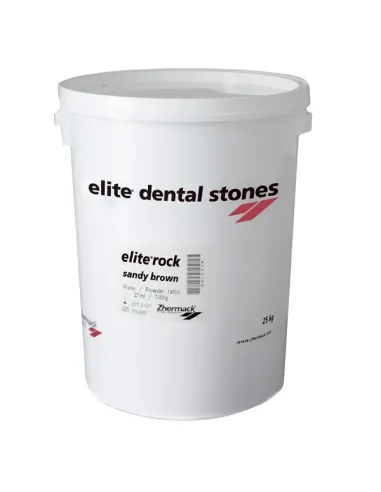 Cubo de 25kg de yeso extra duro Elite Rock de Clase IV de Zhermack, para la realización de modelos en prótesis fijas totales o parciales y prótesis de implantología.