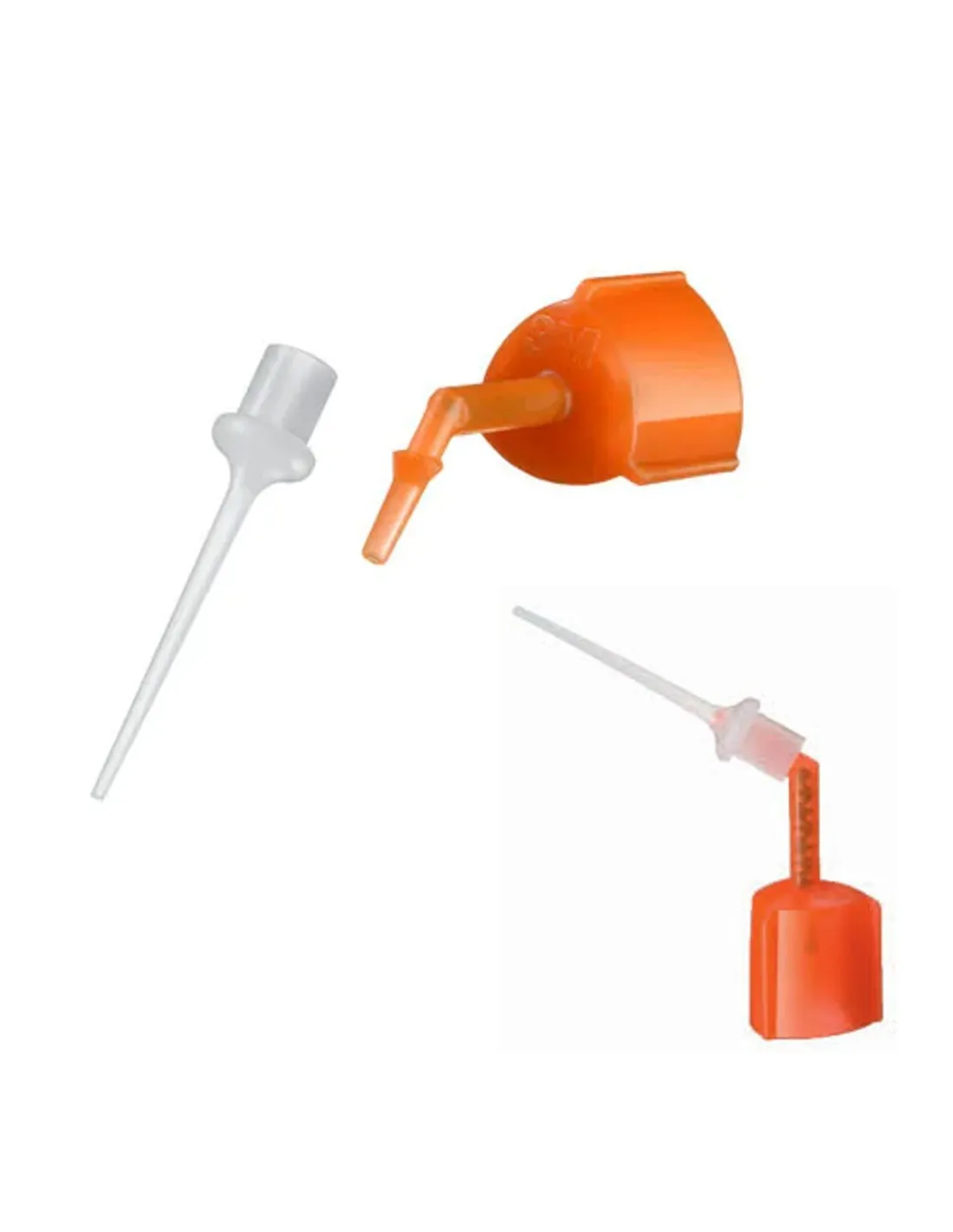 - Cánula de elongación fina y larga para llegar mejor al conducto radicular.