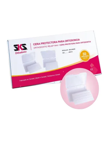 La cera de ortodoncia para paciente de SKS Dental crea una fina capa protectora para aliviar el dolor y la irritación causados por los aparatos de ortodoncia, adhiriéndose a éstos (brackets, alambres, ganchos auxiliares, conductos y ligaduras).