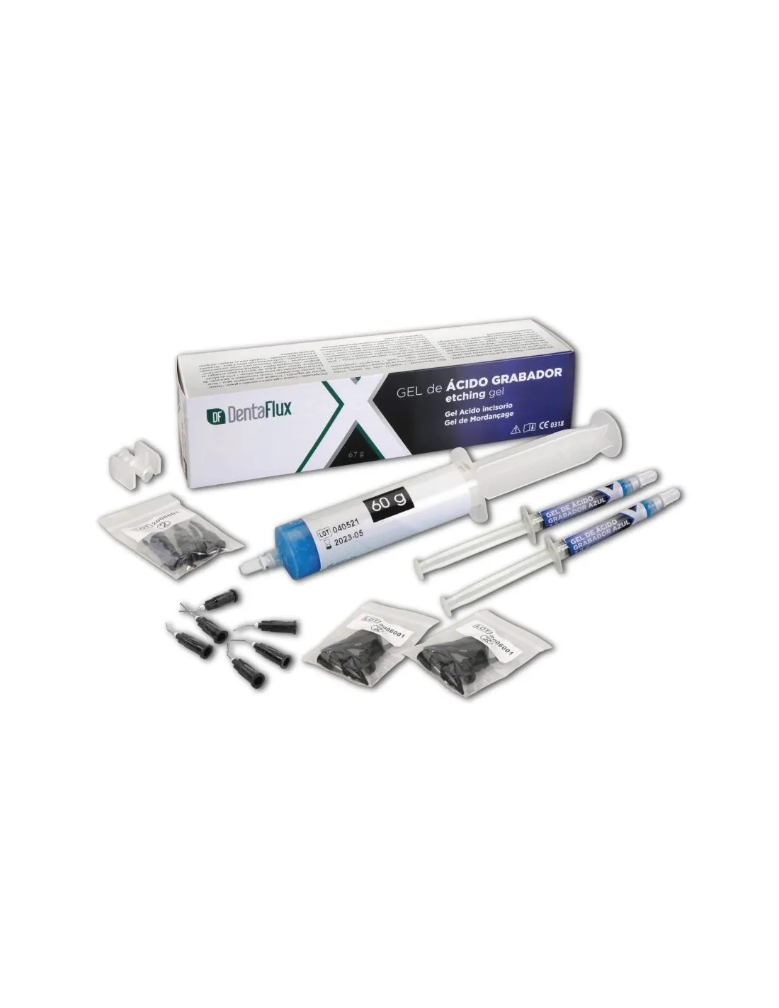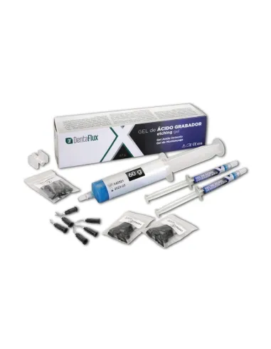 El gel grabador ácido fósforico 37% de Dentaflux se presenta en jeringa de 50 ml + accesorios.