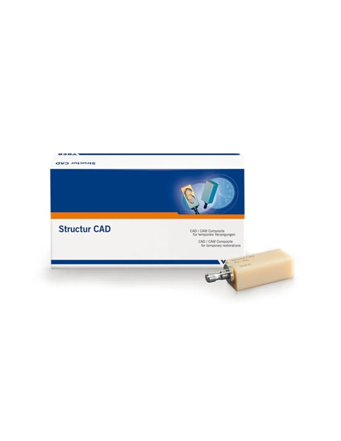 Structur CAD Blocs de Voco es un bloque de composite CAD/CAM que se emplea en la elaboración rápida y eficiente de restauraciones provisionales a medida mediante la técnica de tallado de CAD/CAM.