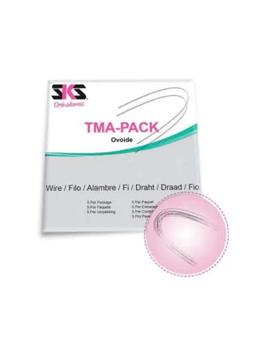Los arcos TMA Beta Titanio de SKS Orthodontics presentan forma ovoide, rectangular, Europa II. Y están disponibles en diferentes medidas y grosores para arcada superior e inferior.