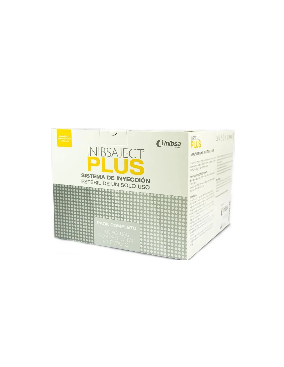 El envase de Inibsaject Plus de Inibsa contiene: 100 agujas dentales estériles.