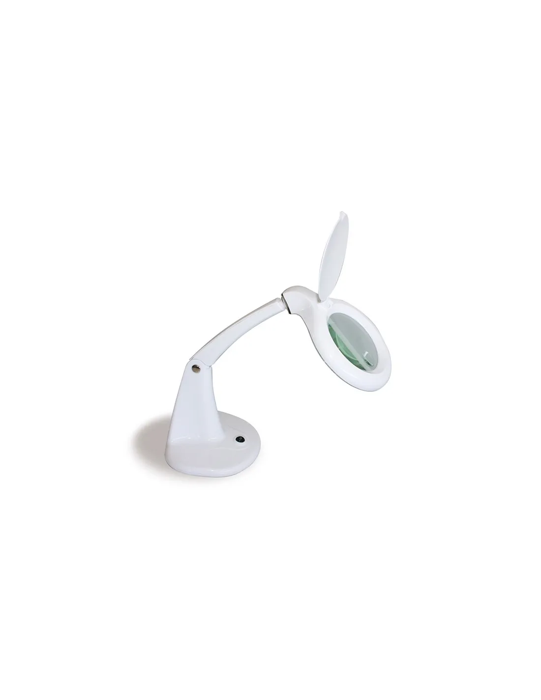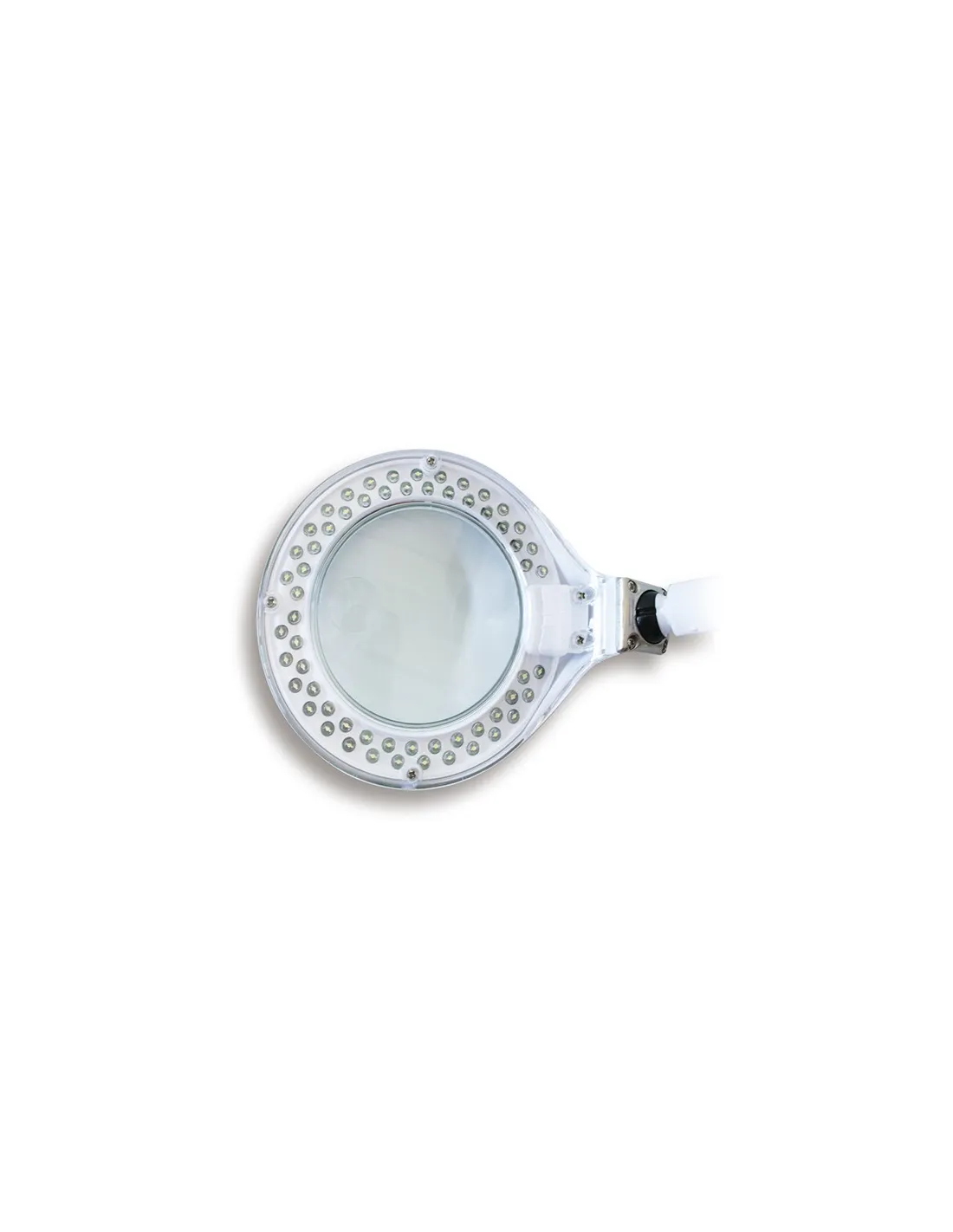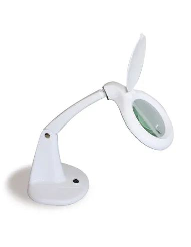 Lámpara-lupa bifocal de Technoflux de bajo consumo que consta de 60 LEDs blanco, con lente de 3+12 dioptrías y soporte a mesa con interruptor de encendido y apagado.
