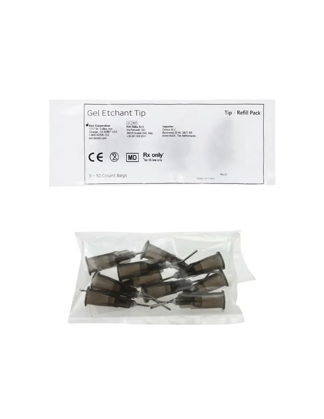 Puntas de aplicación Kerr especialmente diseñadas para su utilización junto con el gel Etchant, gel de ácido ortofosfórico al 37,5% para el grabado de esmalte o dentina.