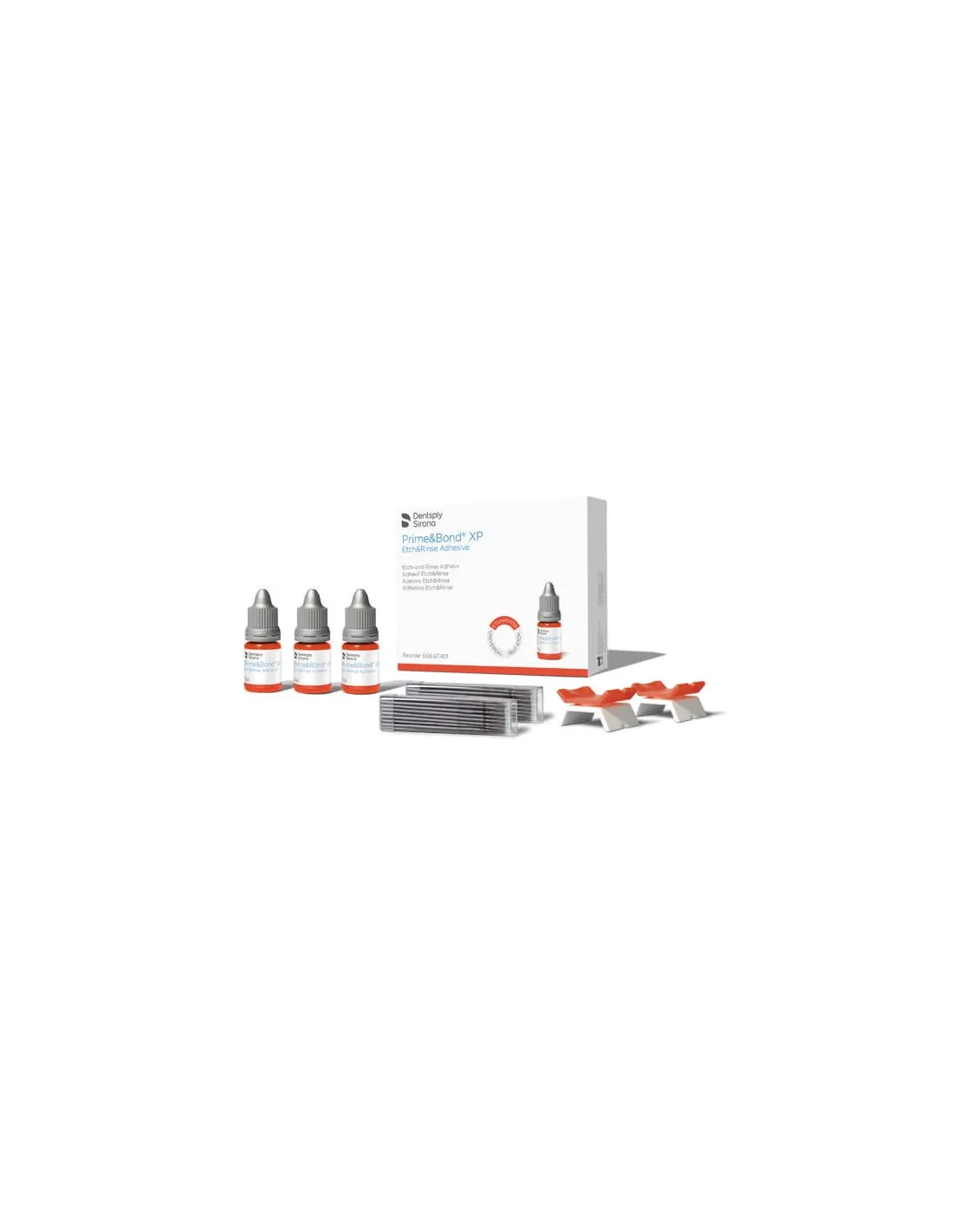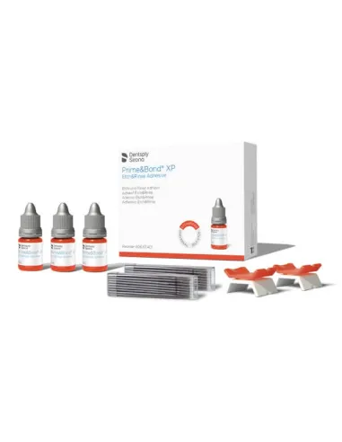 El kit económico de XP Bond de Dentsply incluye 3 frascos semi-transparentes de 5ml, 2 cajas con 50 aplicadores, 2 CliXdish y un manual de instrucciones.